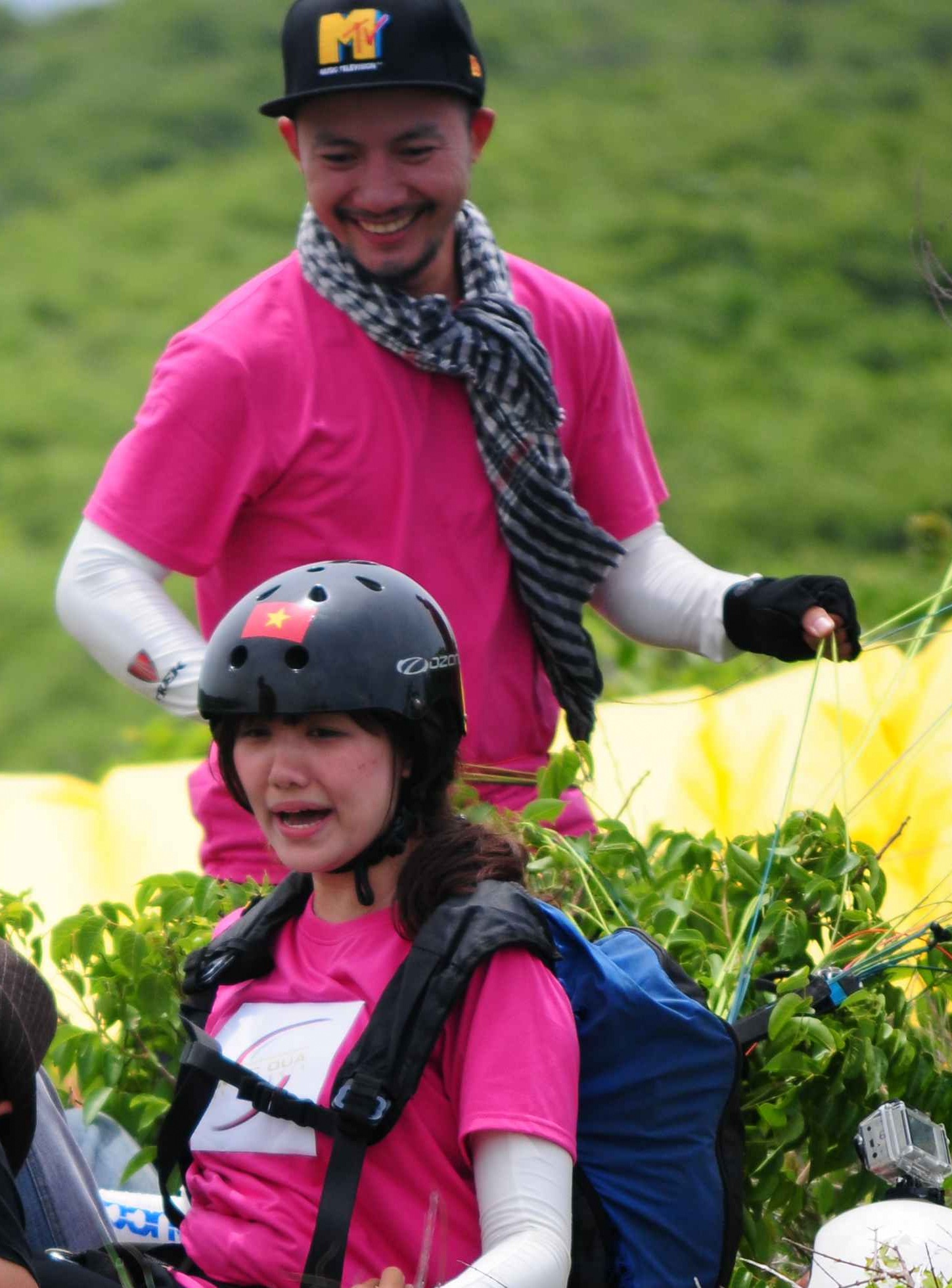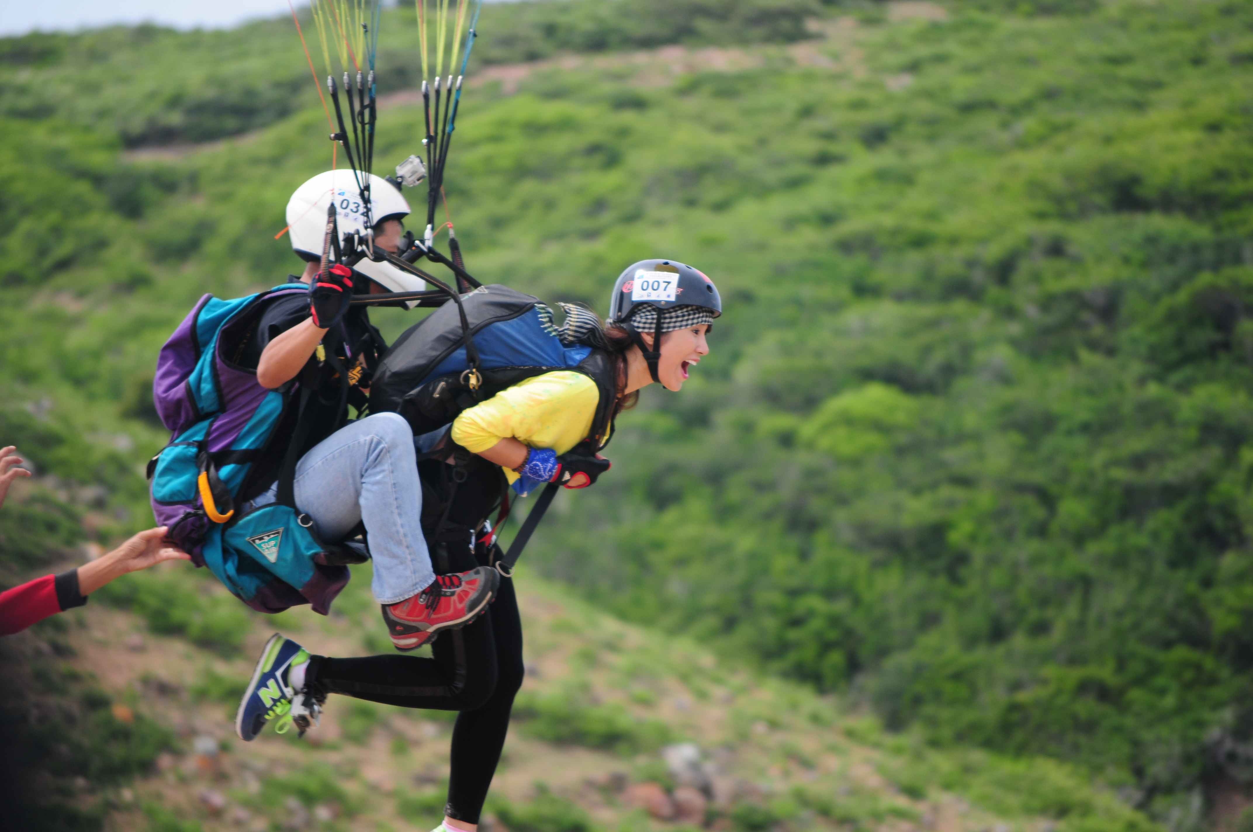 | Hari tự tin chọn thực hiện thử thách bay dù lượn. |