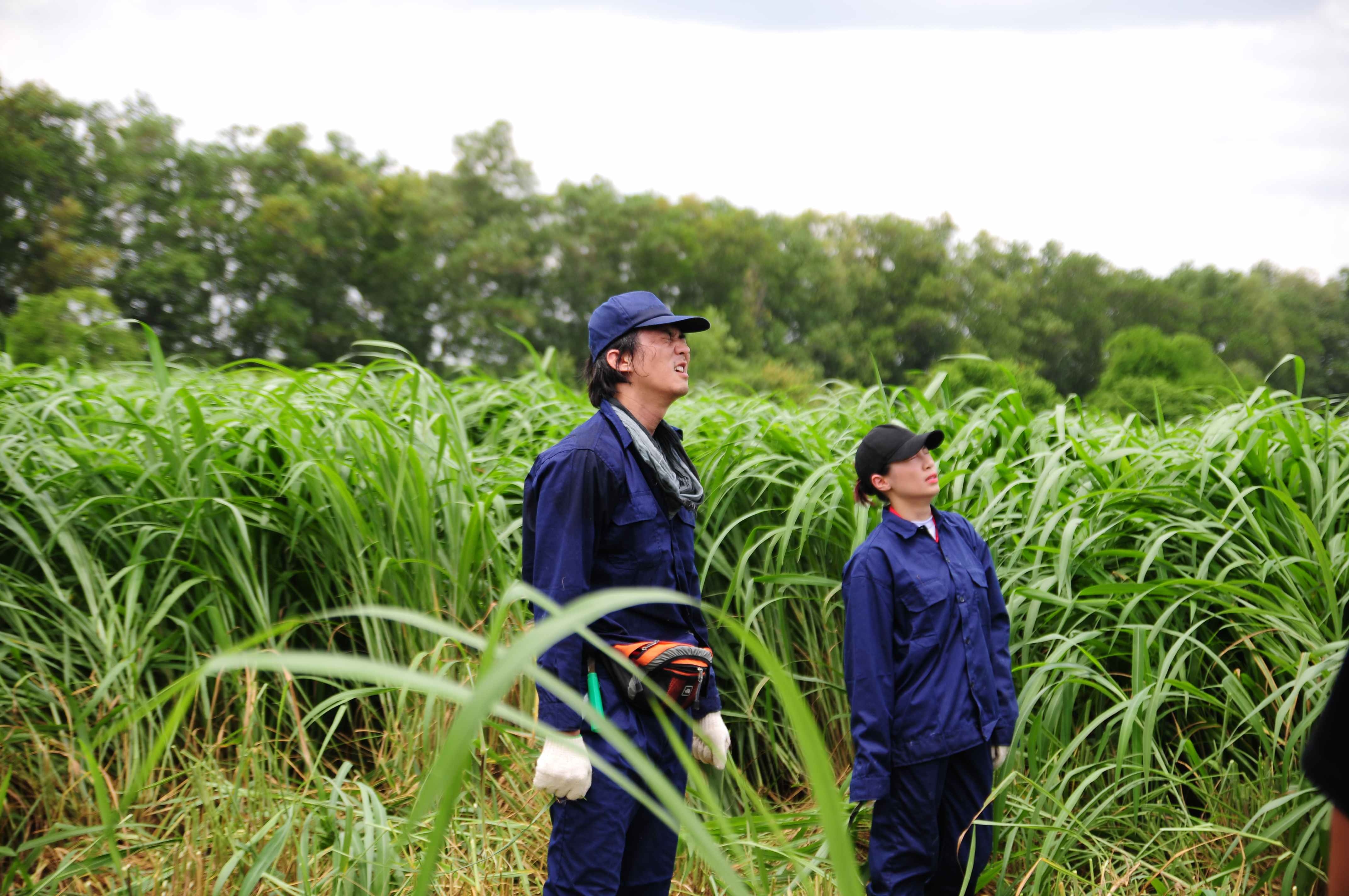| Pha Lê "khóc ngất" trước sự "hoành tráng" của đám cỏ mà mình phải cắt. |