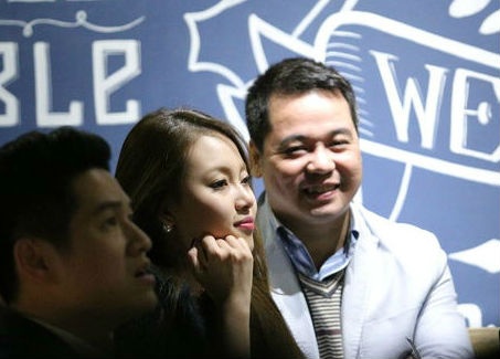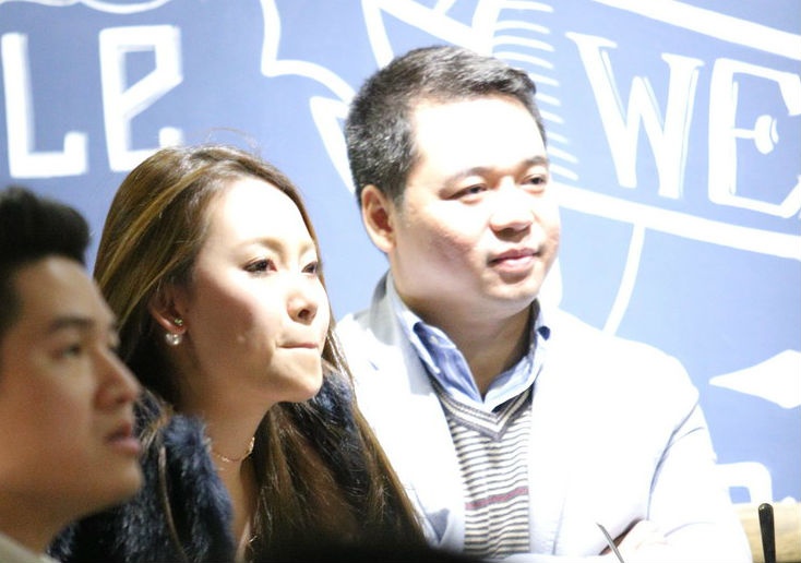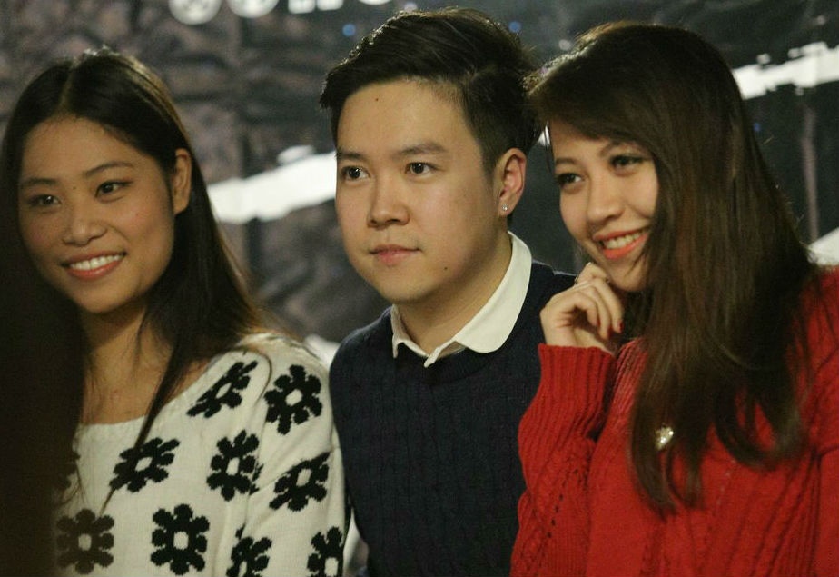 Trong khi Lê Hiếu chụp ảnh với khán giả, bạn gái anh lặng lẽ ngồi chờ.