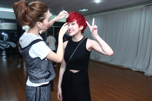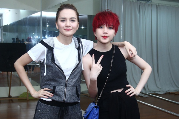 | Chị em Thiều Bào Trang nô đùa trên sàn tập. Sau một thời gian thành lập, nhờ sự dìu dắt của nhạc sĩ Phương Uyên, nhóm ngày càng trưởng thành và tự tin trên sân khấu. |
