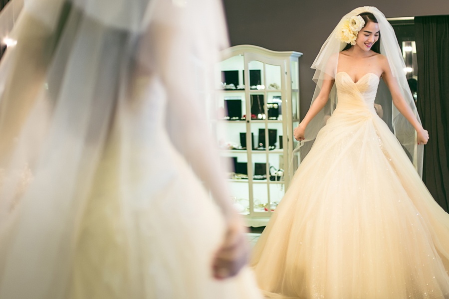 Bạn gái Ưng Hoàng Phúc một mình đi thử váy cưới