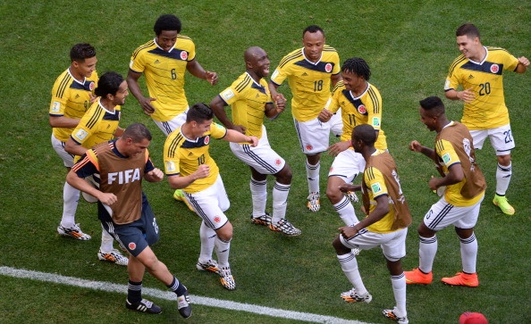 | Màn ăn mừng quen thuộc của các cầu thủ Colombia. |