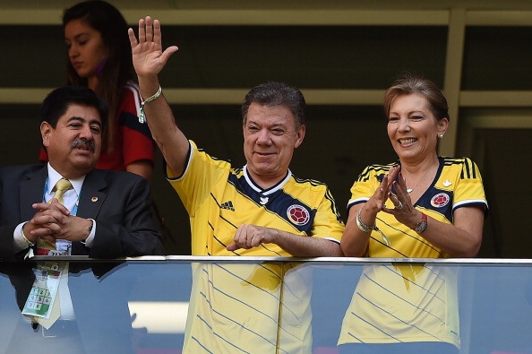 | Sự có mặt của tổng thống Colombia, Juan Manuel Santos trên khán đài sân Mane Garrincha... |