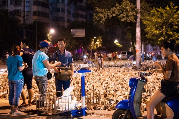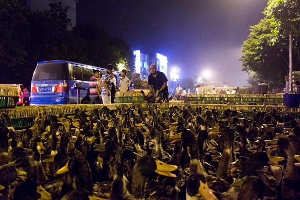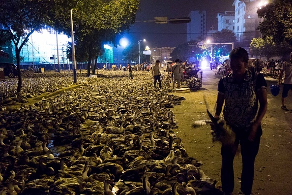 | Từ sáng sớm, người bán, kẻ mua nườm nượp khắp các con đường. Các xe ô tô chở vịt cũng nhanh chóng tới địa điểm tập kết. Ảnh: chinanews.com |