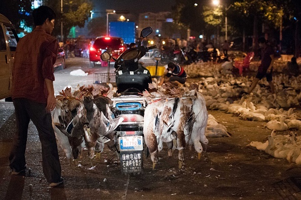 | Một người đàn ông chở vịt ra "chợ". Ảnh: Getty |