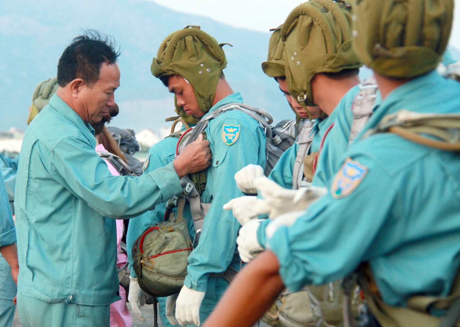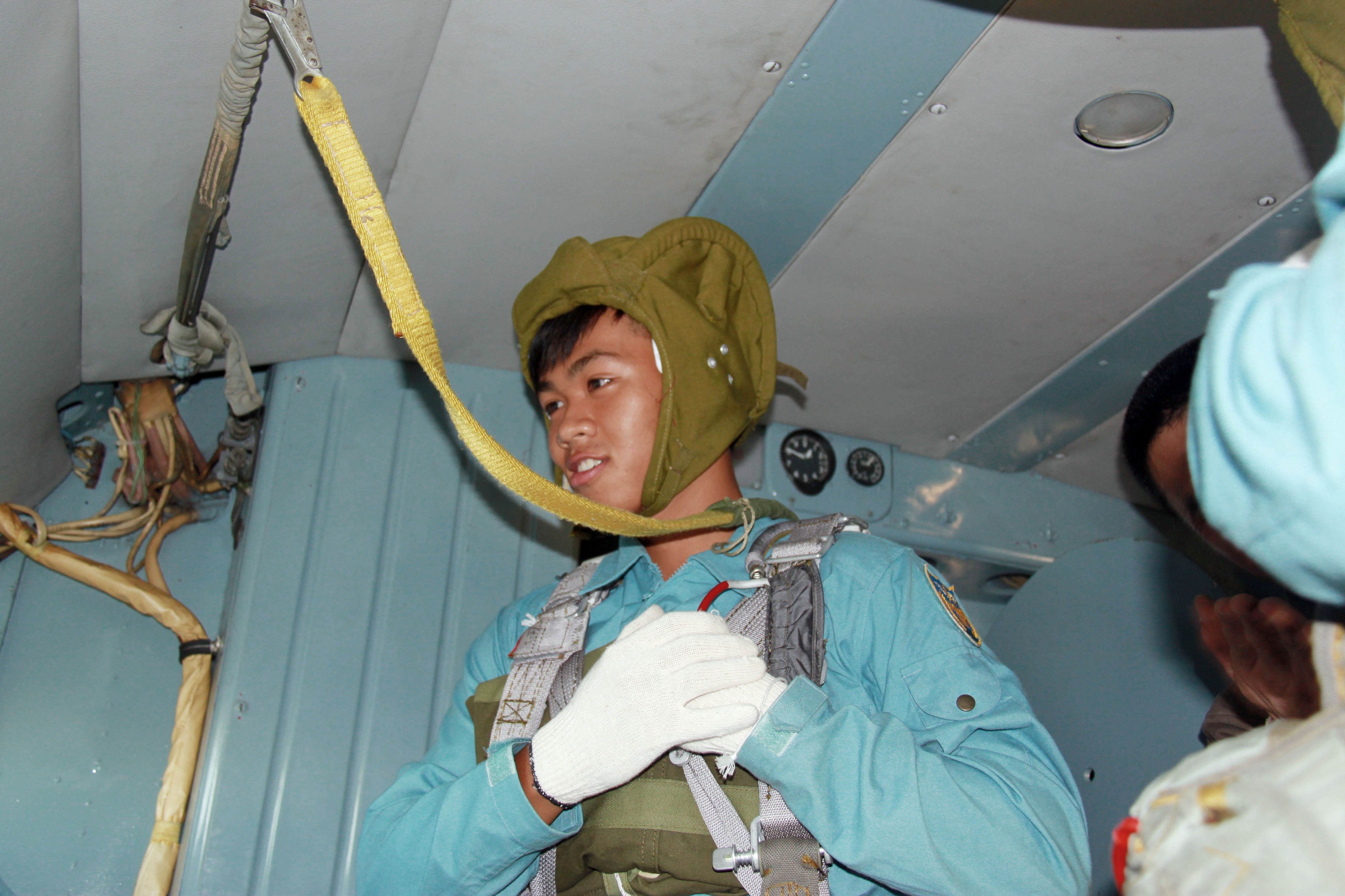 | Với 18 năm kinh nghiệm bay, trung tá Phạm Văn Tiệp cho rằng, tố chất quan trọng nhất của một phi công là phải xử lý tốt những bất trắc gặp phải khi đang bay. Trong ảnh, học viên phi công chuẩn bị lên máy bay tập nhảy dù. |