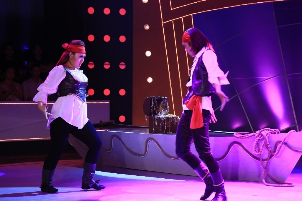 Lấy ý tưởng từ bộ phim Những tên cướp biển vùng Caribbean, Minh Hiền - Minh Thảo tiếp tục chinh phục người xem trong điệu pasodoble. Tuy nhiên, Đàm Vĩnh Hưng không hài lòng vì tiết mục thiên về diễn xuất hơn vũ đạo, ý tưởng câu chuyện cũng chưa rõ ràng. John Huy cũng cho rằng những động tác của Minh Thảo chưa thật sự thuyết phục. Dù thông cảm cho sự cố của cặp đôi nhưng biên đạo tài năng cũng khẳng định cuộc thi vẫn phải tiếp diễn. |