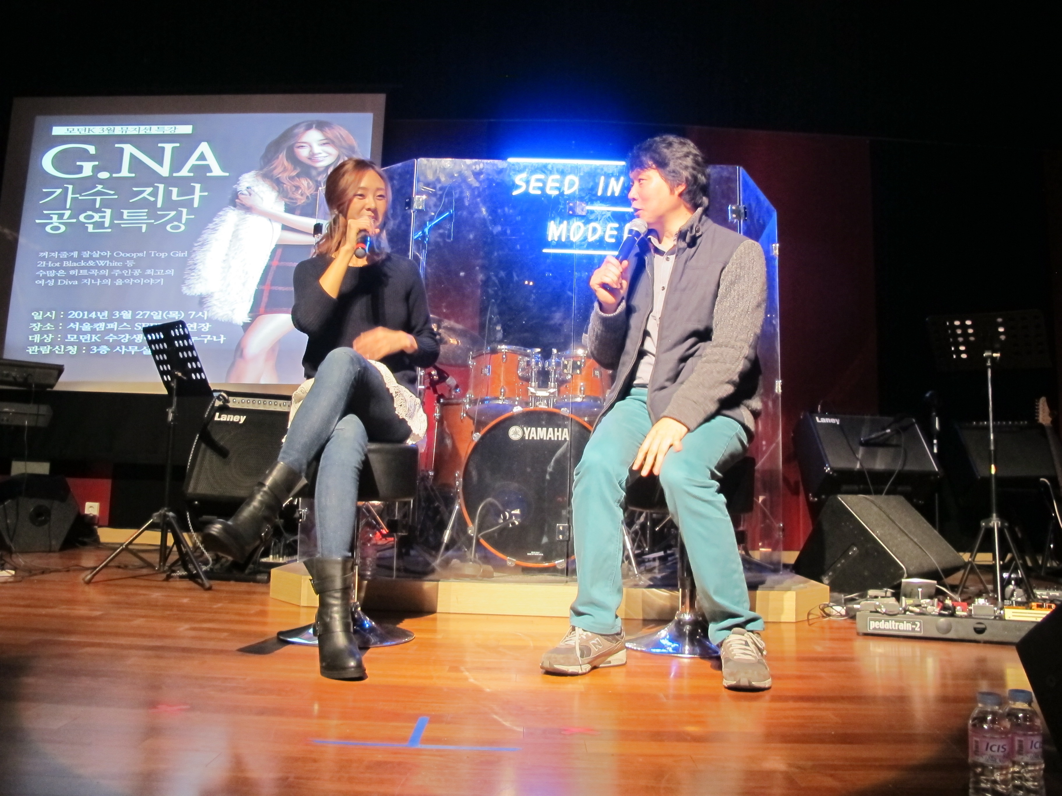 Là mỹ nhân sở hữu đường cong nóng bỏng, G.Na là một trong những ứng viên sáng giá có thể soán ngôi nữ hoàng sexy của Lee Hyori. Không chỉ sở hữu giọng hát ấn tượng, cô đang khẳng định chỗ đứng riêng trong làng giải trí xứ kim chi nhờ những hình ảnh quyến rũ. Bắt đầu bước chân vào showbiz cách đây 4 năm, G.Na nhanh chóng gặt hái được thành công. Trong thời gian các thí sinh Ngôi sao Việt luyện tập ở Hàn Quốc, G.Na đã tới cổ vũ và chia sẻ kinh nghiệm.