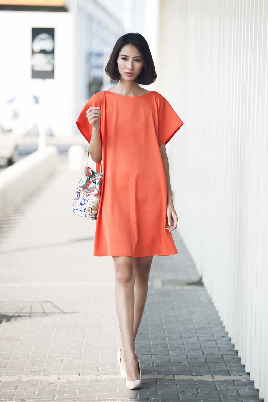 | Bất lợi vóc dáng gầy gò trở thành ưu điểm để Hằng Nguyễn thể hiện thành công bộ sưu tập dáng suông của Thủy Nguyễn. Theo nhà thiết kế, trang phục phom rộng được yêu thích bởi tính năng tiện lợi, dễ dàng phù hợp với nhiều vóc dáng. |