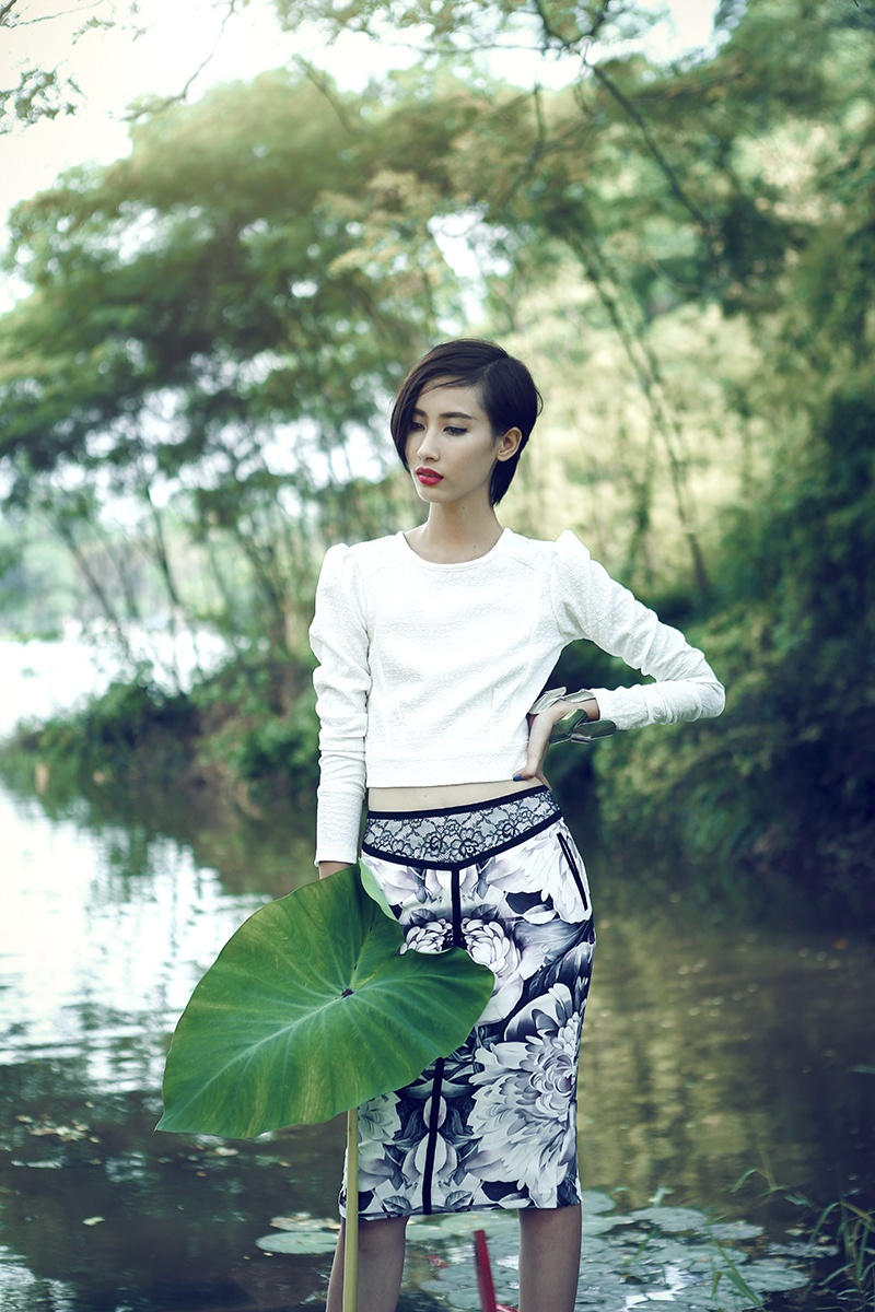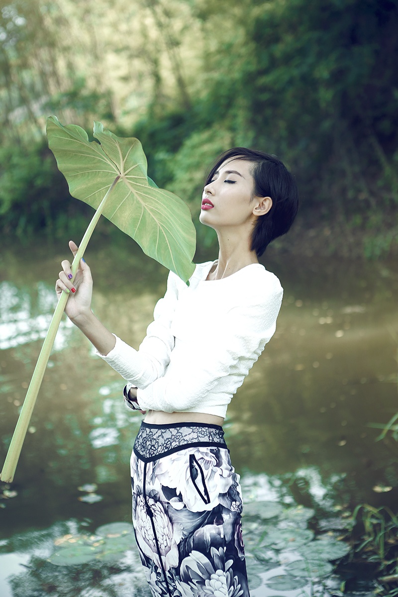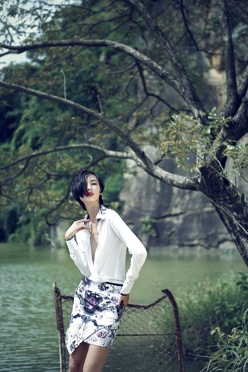 | Bộ sưu tập mới của NTK Nguyễn Hà Nhật Huy hướng đến vẻ đẹp thanh lịch, nhã nhặn. Tông màu chủ đạo là trắng sáng và họa tiết in hoa nền nã. Bối cảnh bộ ảnh được thực hiện tại vùng quê ven thành phố Biên Hòa. |