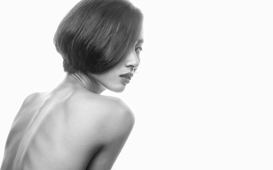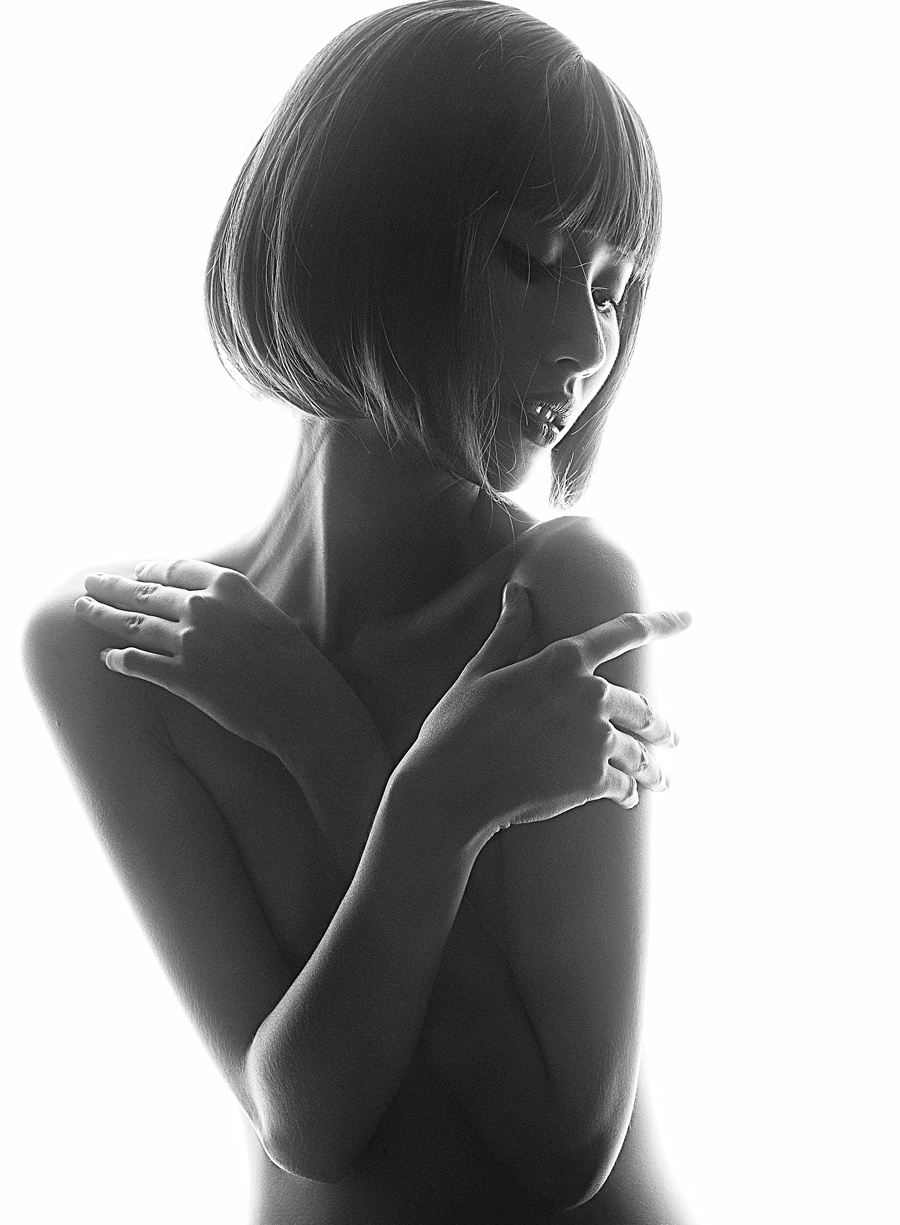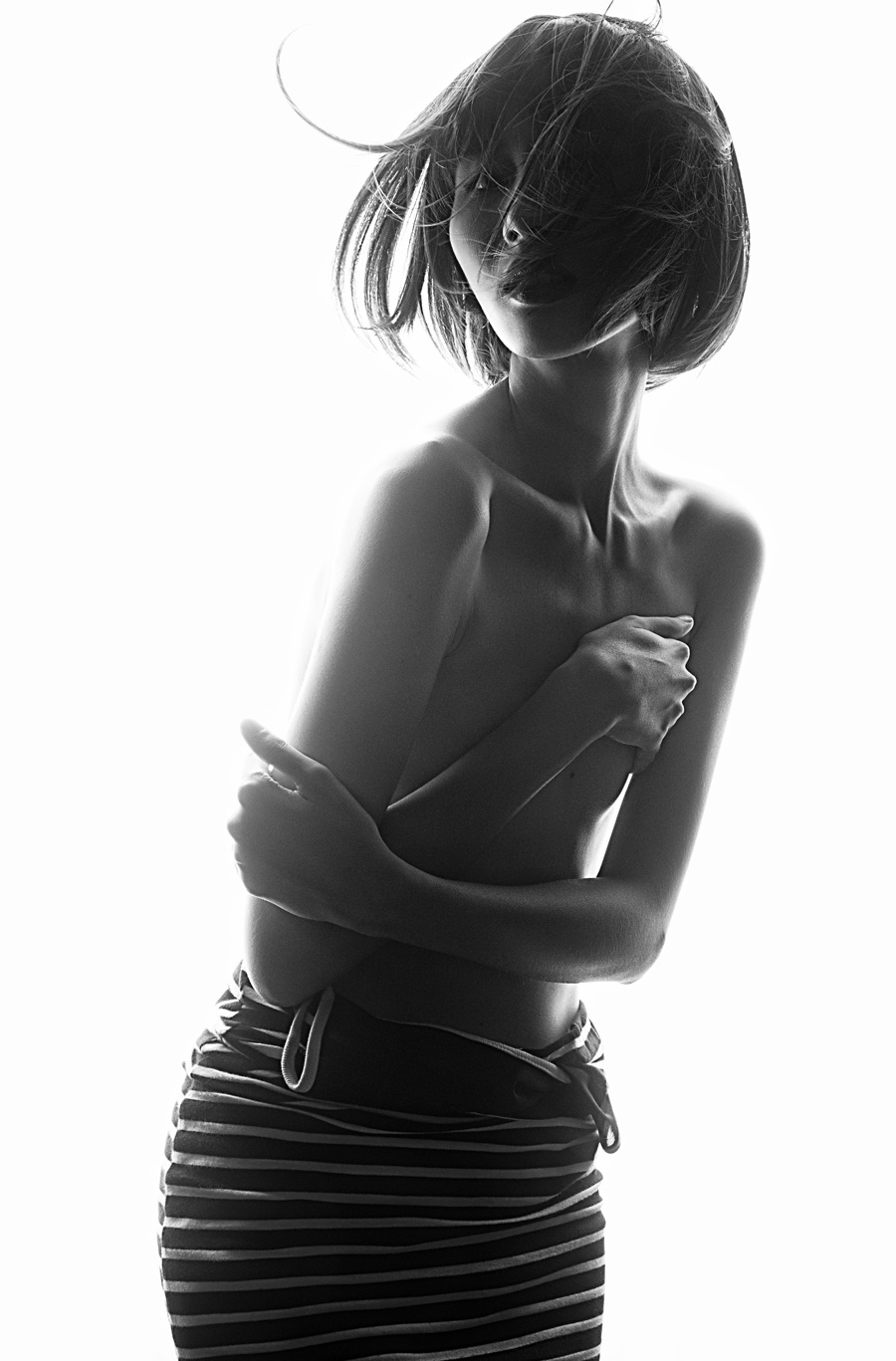 | Nữ người mẫu 21 tuổi dùng tay che khéo vòng 1 nhỏ nhắn, tạo hình ảnh đậm chất nghệ thuật. |