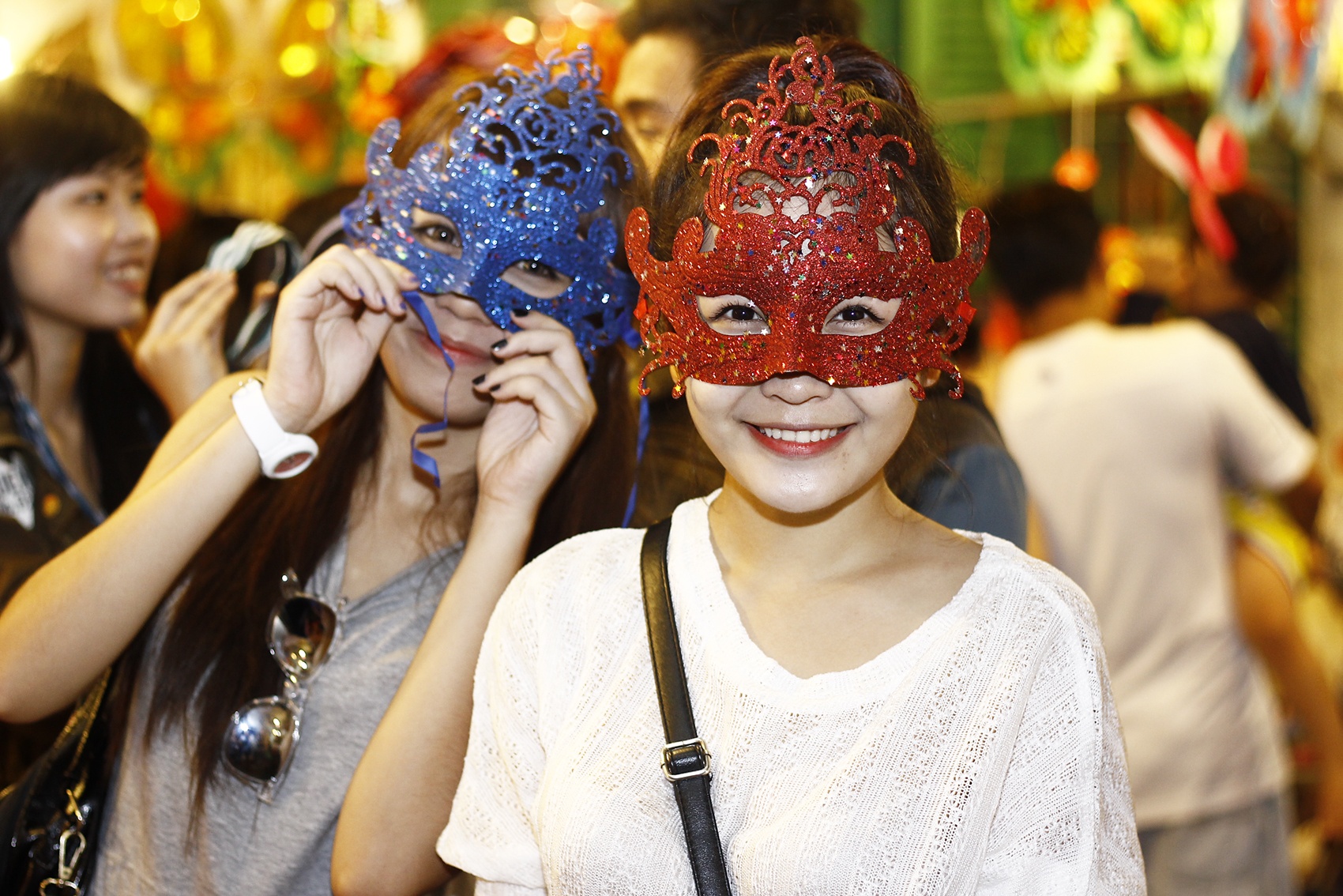 | Các hot girl trong hai đội như Ngọc Trâm, Thảo My... tíu tít sắm mặt nạ để dạo phố chơi Trung thu. |