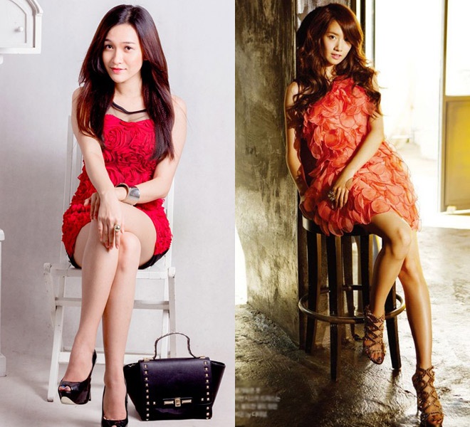 | Ê-kíp Mi Băng đưa ra những dẫn chứng cụ thể để minh chứng cho việc mình rất giống với Yoona như cùng sở hữu ánh mắt hồn nhiên, tóc dài ngang lưng. Mi Băng cao 1m70 nặng 48kg, trong khi Yoona cao 1m68 nặng 48 kg. Về sự nghiệp cả hai đều cùng theo đuổi hình tượng nghệ sĩ đa năng hát tốt, nhảy đẹp và đóng phim hay. |