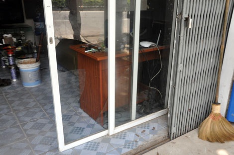 | Cửa kính bị vỡ do trúng đạn từ khẩu súng tự chế. |