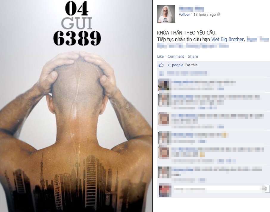 Nếu như những hình kêu gọi bình chọn của Thu Thảo - Quỳnh Trang - Minh Long khá đơn giản thì hình của Sơn Việt lại luôn được trau chuốt và thể hiện rất độc đáo. Đặc biệt, mới đây, 2 tấm ảnh "bán thân" và "khỏa thân" cứu bạn của một người bạn Sơn Việt nhận được rất nhiều lượt ủng hộ và chia sẻ của người hâm mộ.