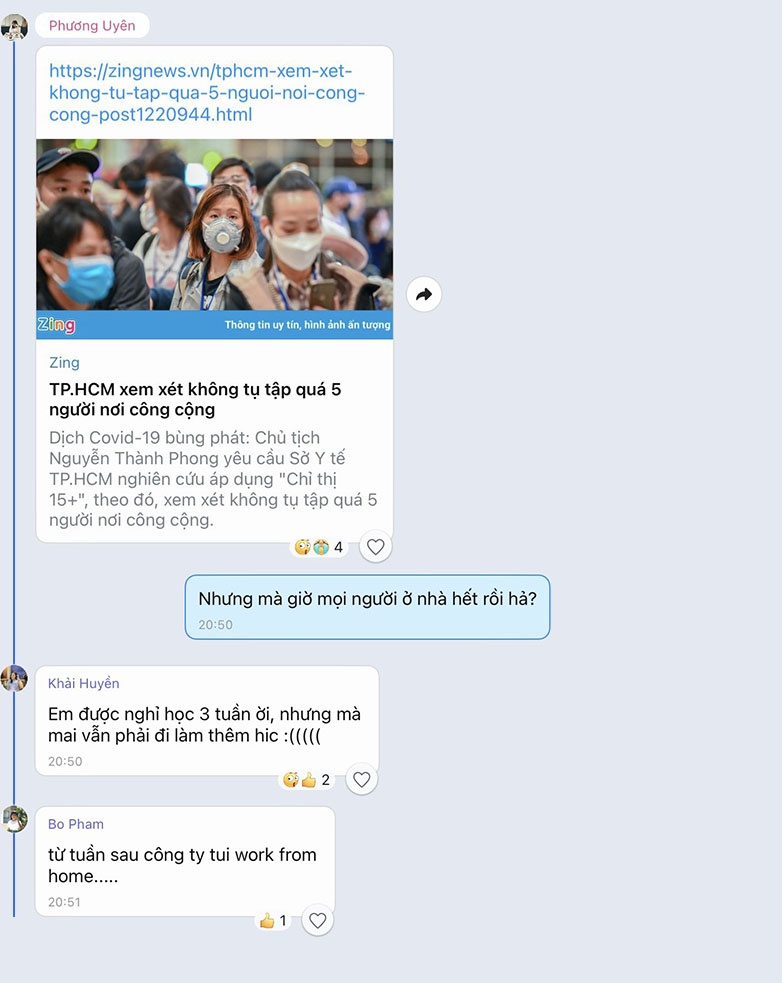 Tối 30/5, một người bạn gửi thông báo giãn cách vào nhóm chat của tôi. Mọi người bắt đầu bàn về 2 tuần sinh hoạt tại gia sắp đến.