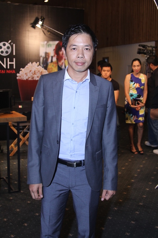 Đạo diễn Lê Hoàng ăn vận giản dị, đứng một góc trò chuyện cùng bạn bè.