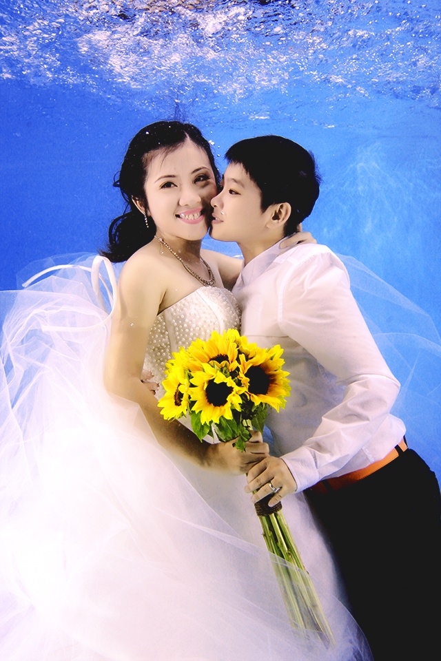 | Ái Linh và Thanh Phương vừa có bộ ảnh cưới dưới nước sau 12 năm yêu nhau. |