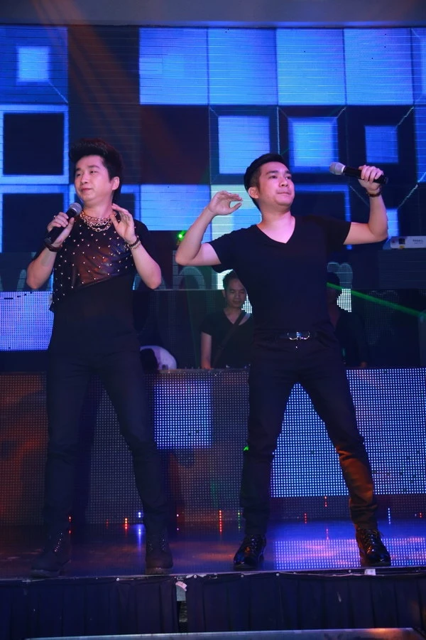 | Bằng Cường và Quang Hà ton-sur-ton với trang phục màu đen. |
