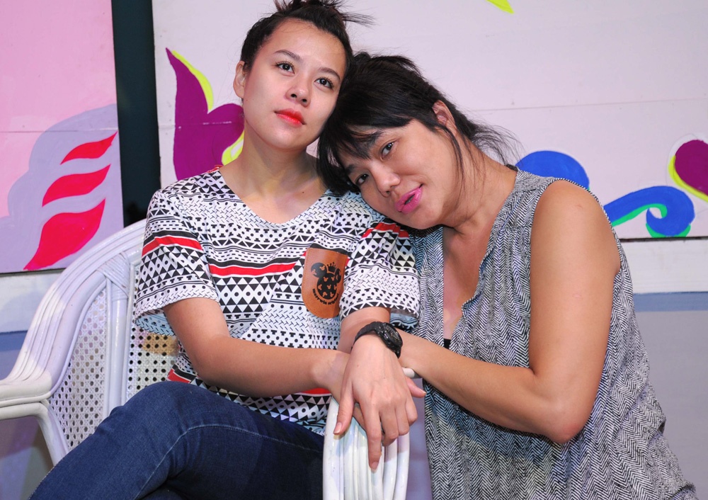 | Băng Di thân thiết với đàn chị Nhã Trúc. Trong vở kịch, họ là tình địch của nhau khi cùng đem lòng yêu nam ca sĩ Tùng Lâm. |