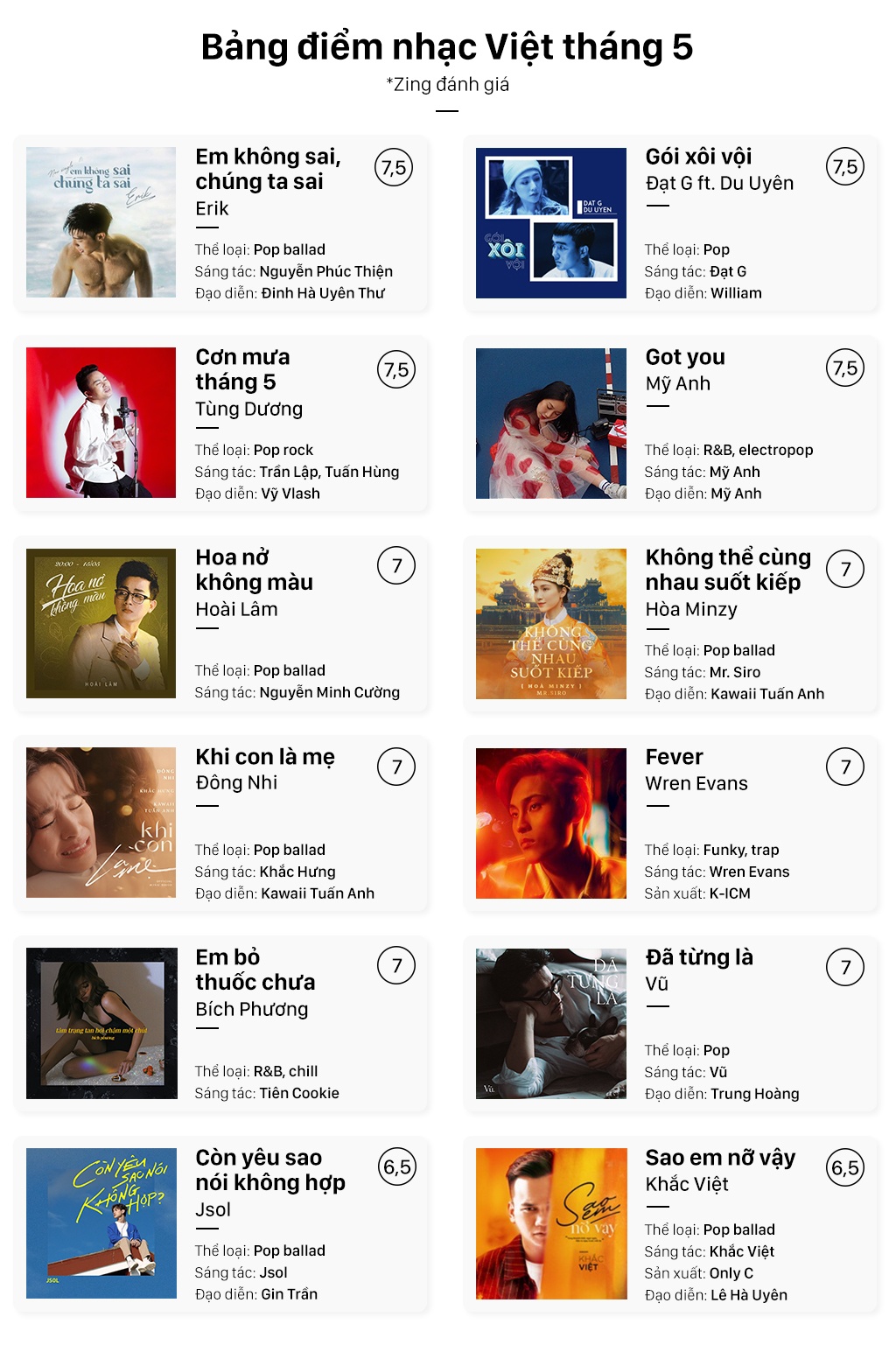 Bảng điểm cuộc chiến nhạc Việt tháng 5: Ai dẫn đầu, ai đội sổ?