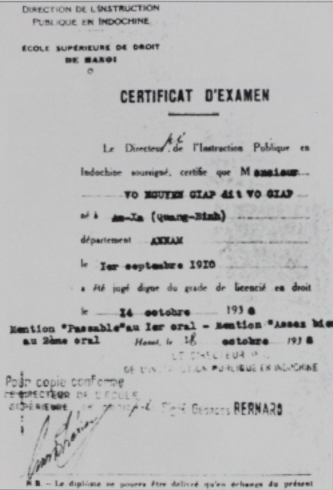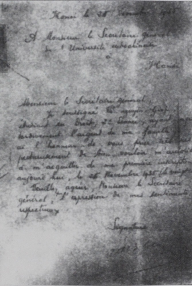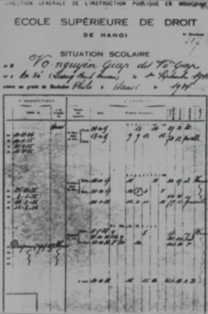 | Đại tướng Võ Nguyên Giáp khi là sinh viên Luật khoa Đại học Đông Dương (1934). |