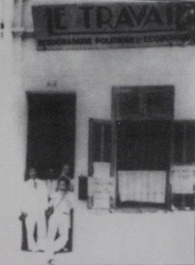 | Đại tướng Võ Nguyên Giáp khi còn trẻ trước cửa tòa báo Le Travail 20/4/1937. |