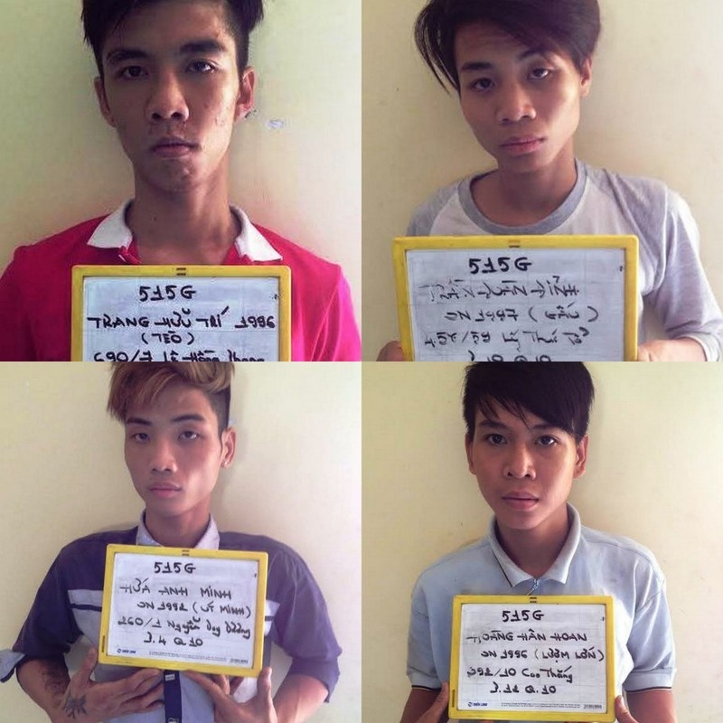 | Bốn nghi can trong băng giang hồ mang mã tấu chém người. Ảnh: Khánh Trung. |