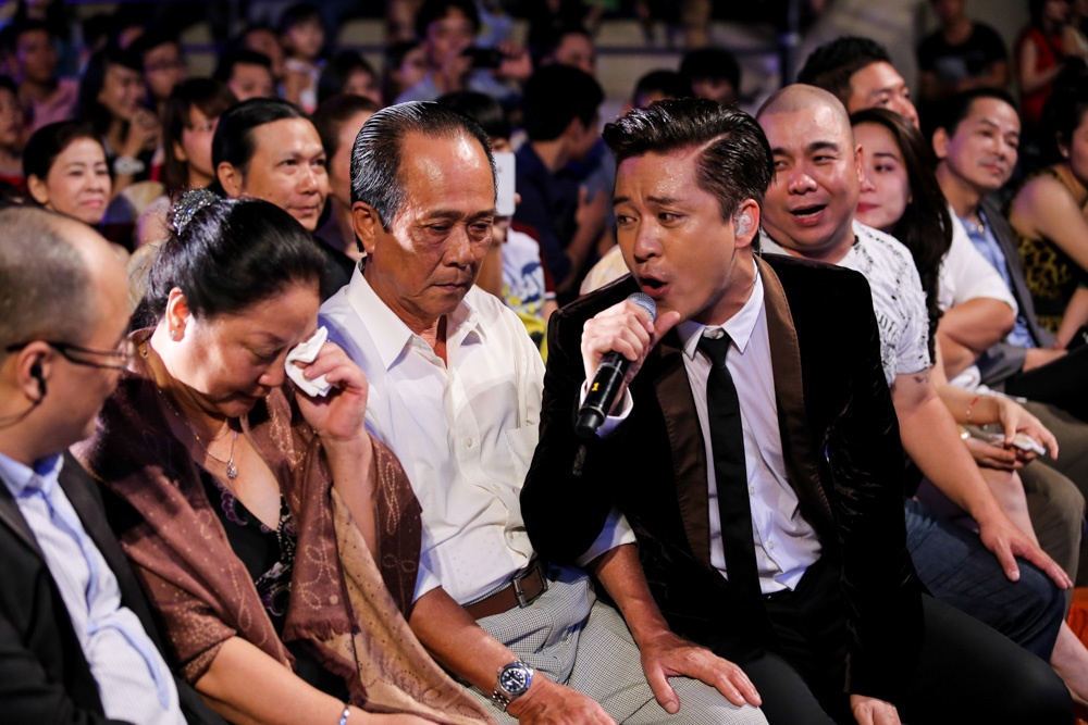 | Mẹ Tuấn Hưng bật khóc khi con trai xuống tận nơi hát bài Mẹ yêu, như một lời cảm ơn các đấng sinh thành nhân ngày sinh nhật. |