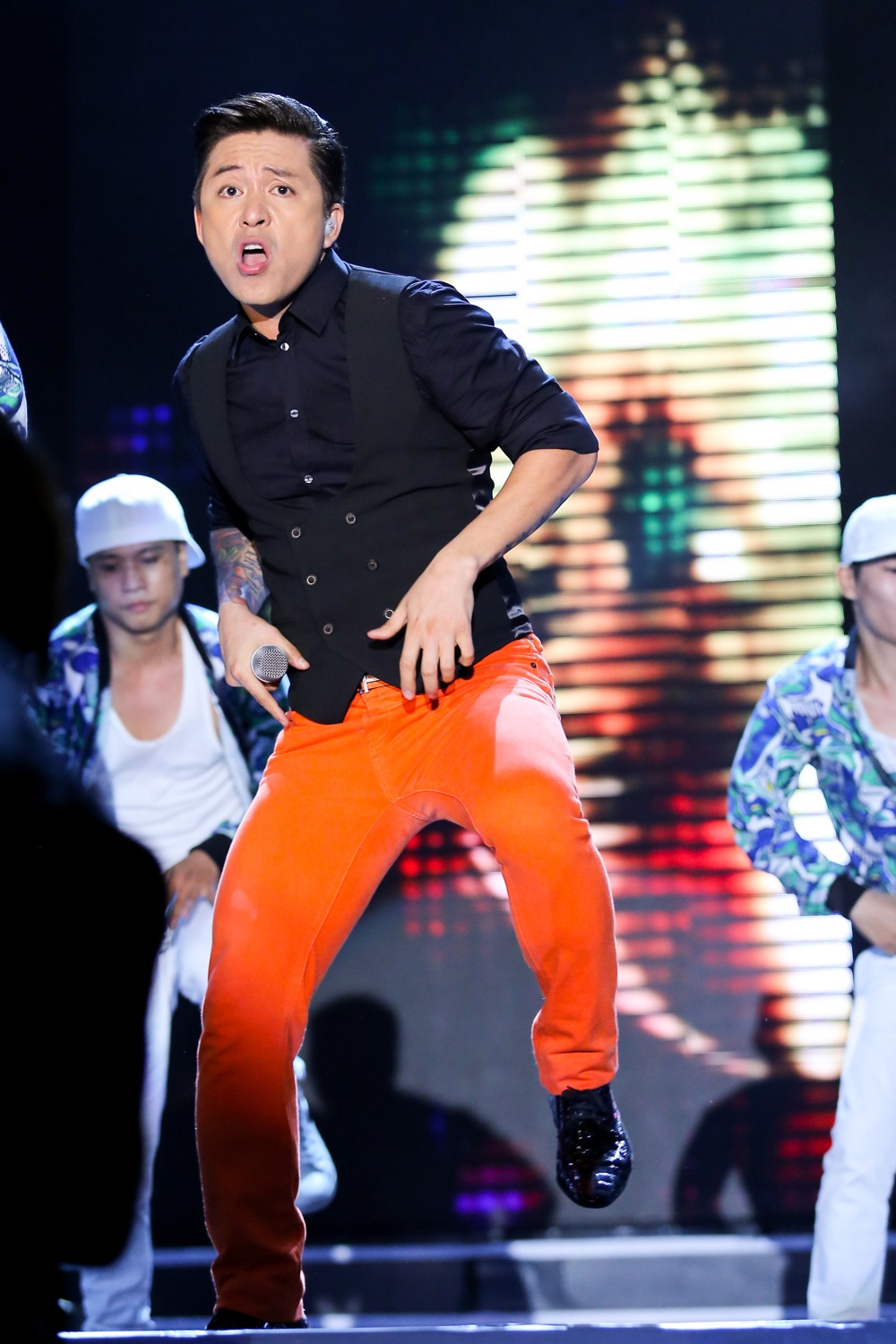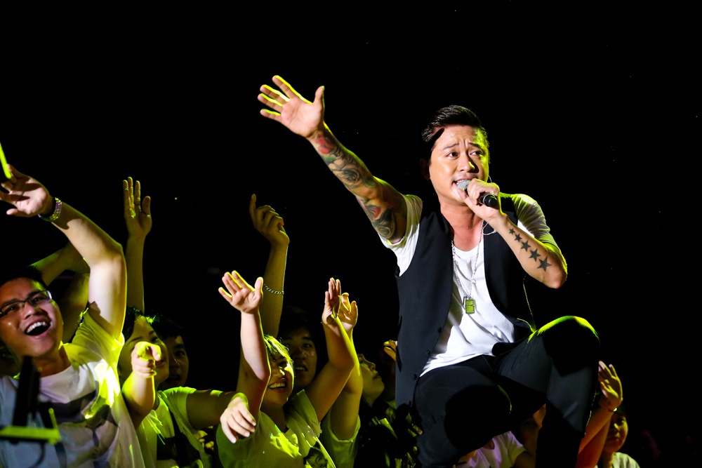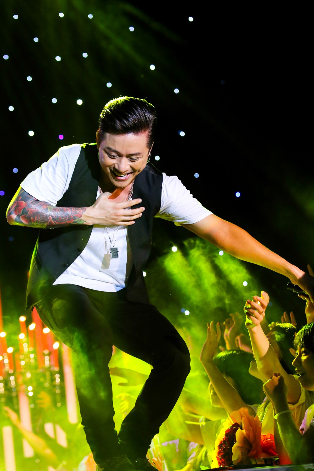 | Trên sân khấu, nam ca sĩ cháy hết mình với khán giả qua những ca khúc quen thuộc làm nên tên tuổi của anh suốt 10 năm qua. |