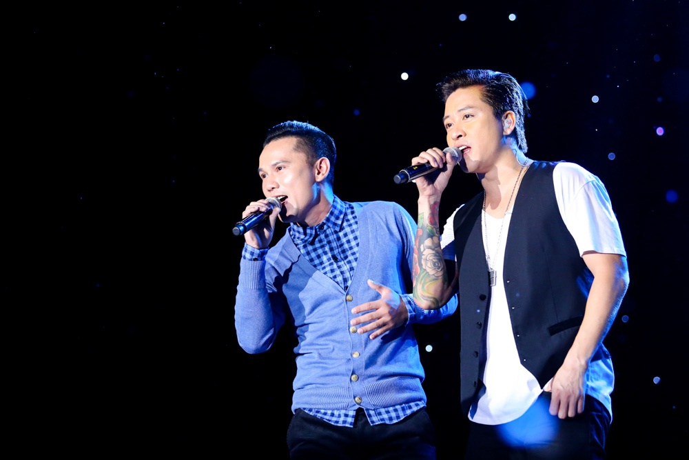 | Dù thiếu hai thành viên trong nhóm Quả Dưa Hấu nhưng Tuấn Hưng và Anh Tú vẫn hết mình trên sân khấu với hai ca khúc Mưa và Giá băng. Dù hơn 10 năm đã trôi qua nhưng cặp đôi vẫn phối hợp ăn ý trên sân khấu. |