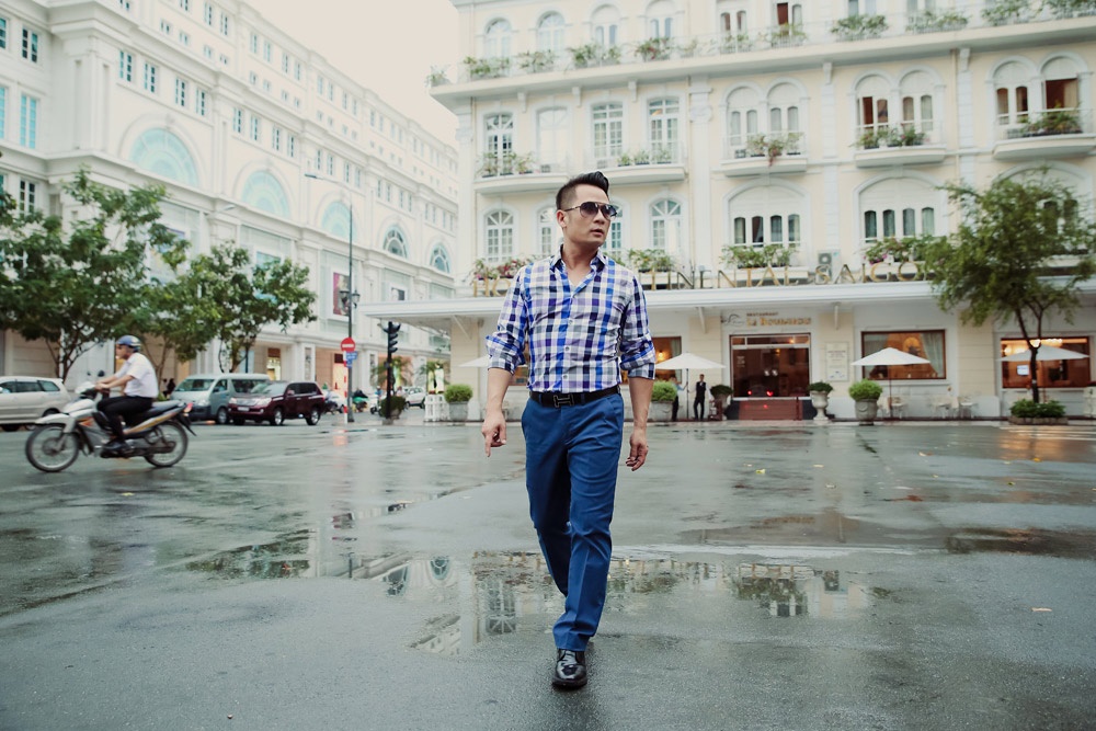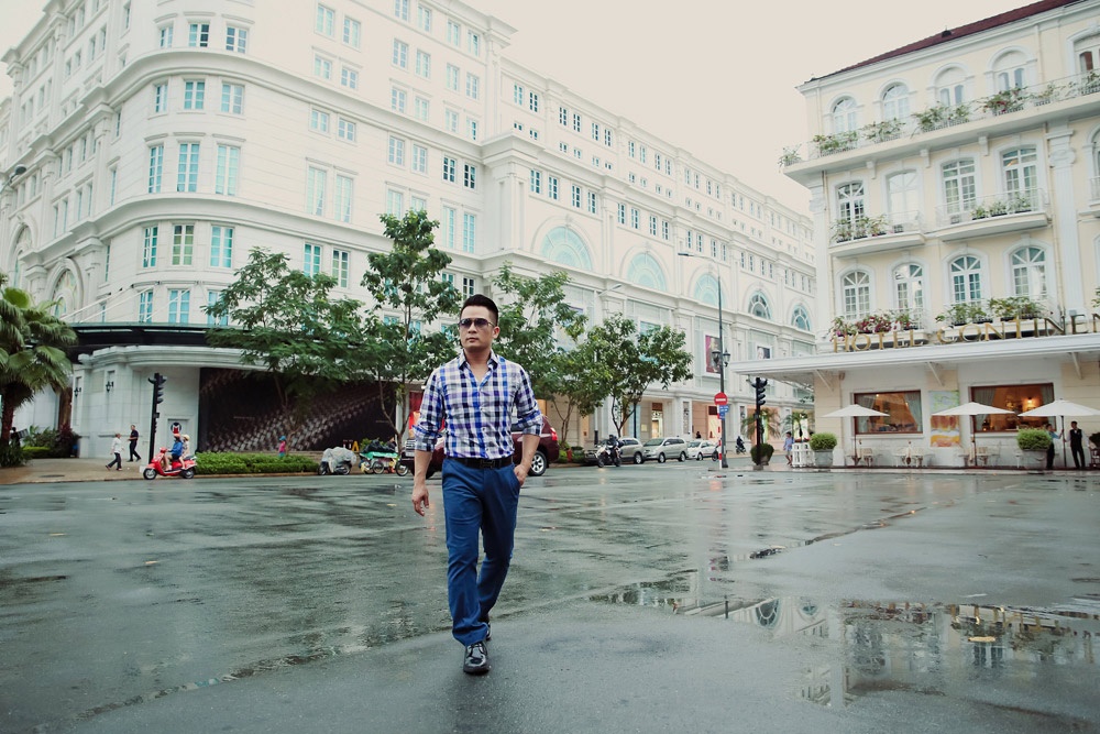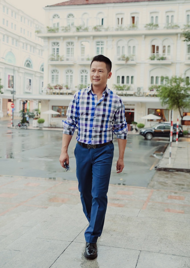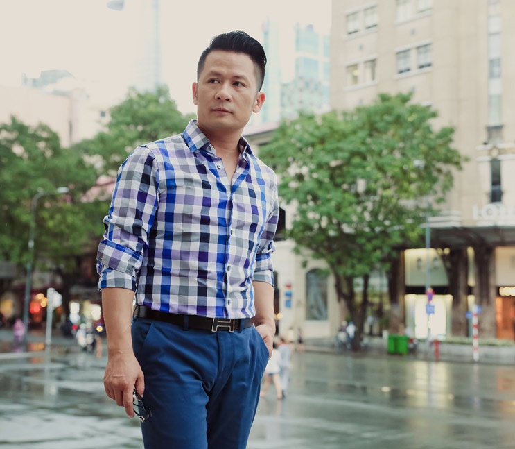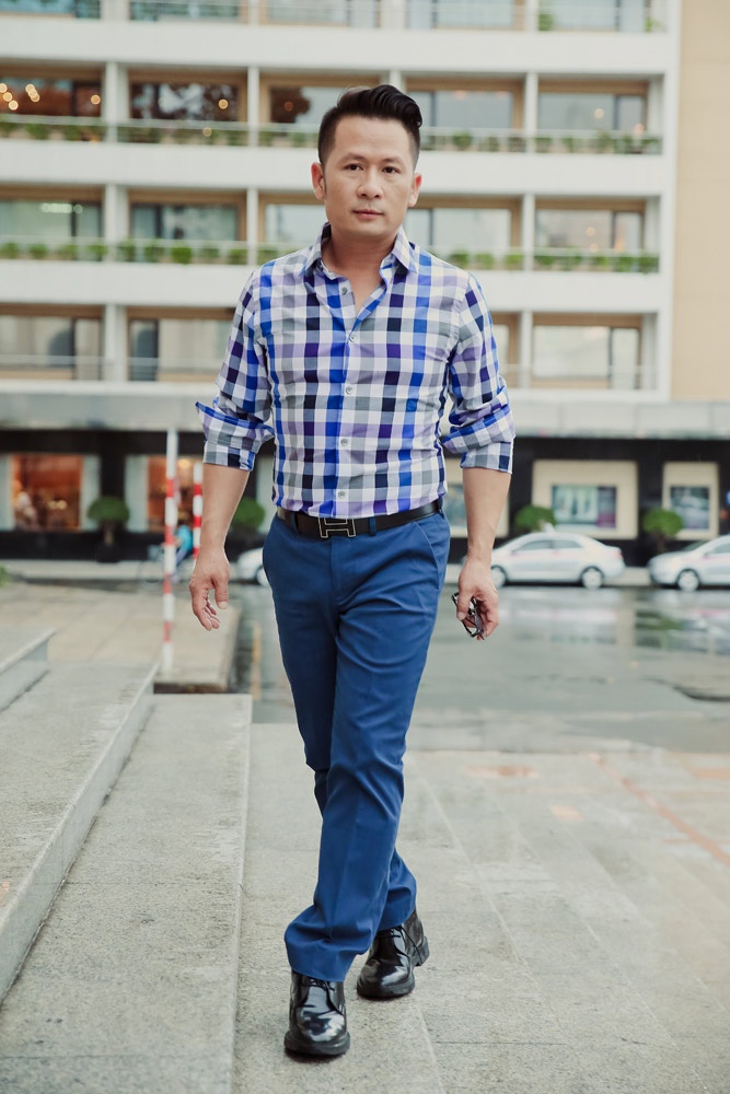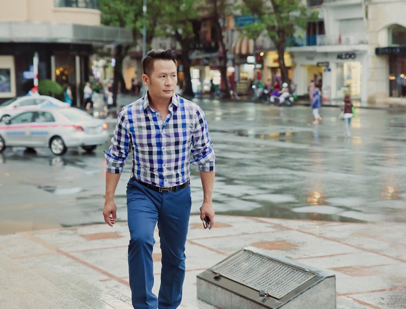 | Ông bố 3 con cũng tâm sự, để tự tin đứng trên sân khấu trong lần trở về, anh phải giảm cân và thay đổi phong cách ăn mặc. Xuất hiện giữa đường phố Sài thành, Bằng Kiều lịch lãm trong chiếc áo sơ mi caro xanh trẻ trung. |