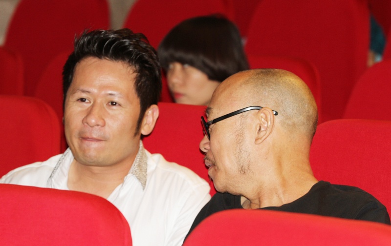 | Họa sĩ Thành Chương cũng là một vị khách của đêm nhạc. Nhận ra sự có mặt của ông, Bằng Kiều tranh thủ lúc nghỉ giải lao nhanh chóng rời vị trí để sang "tám chuyện". |