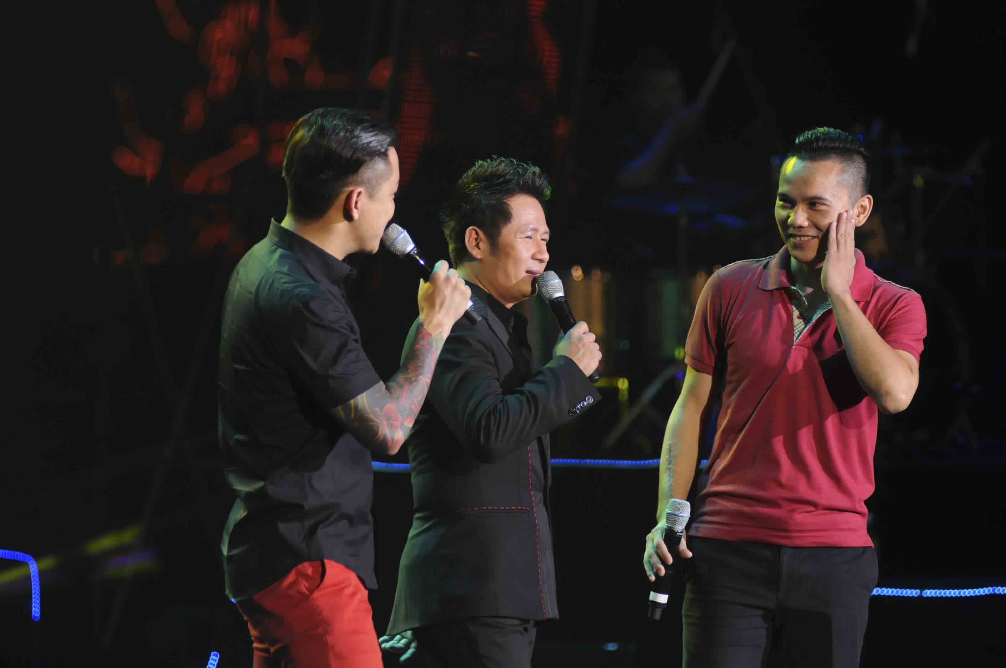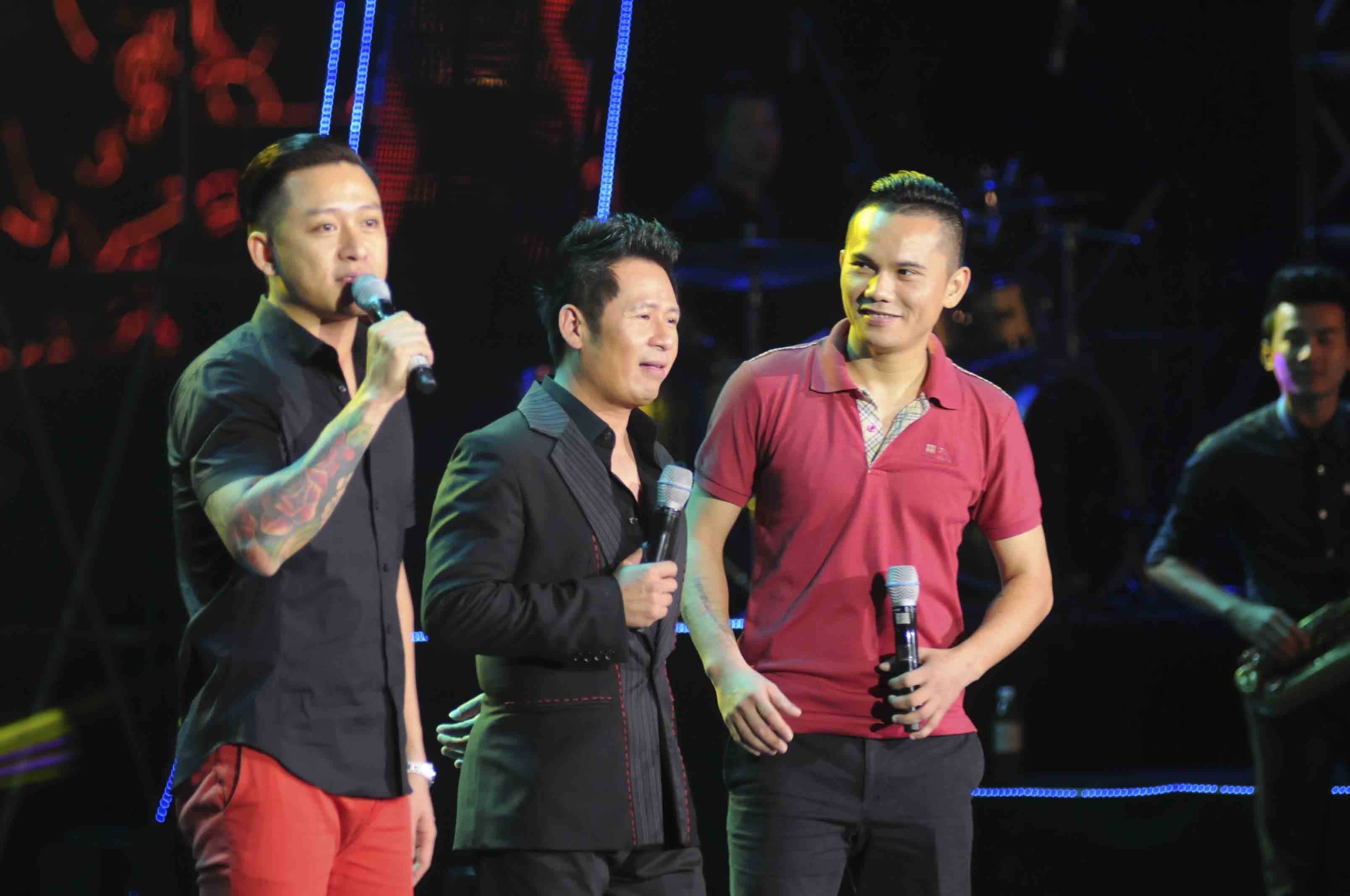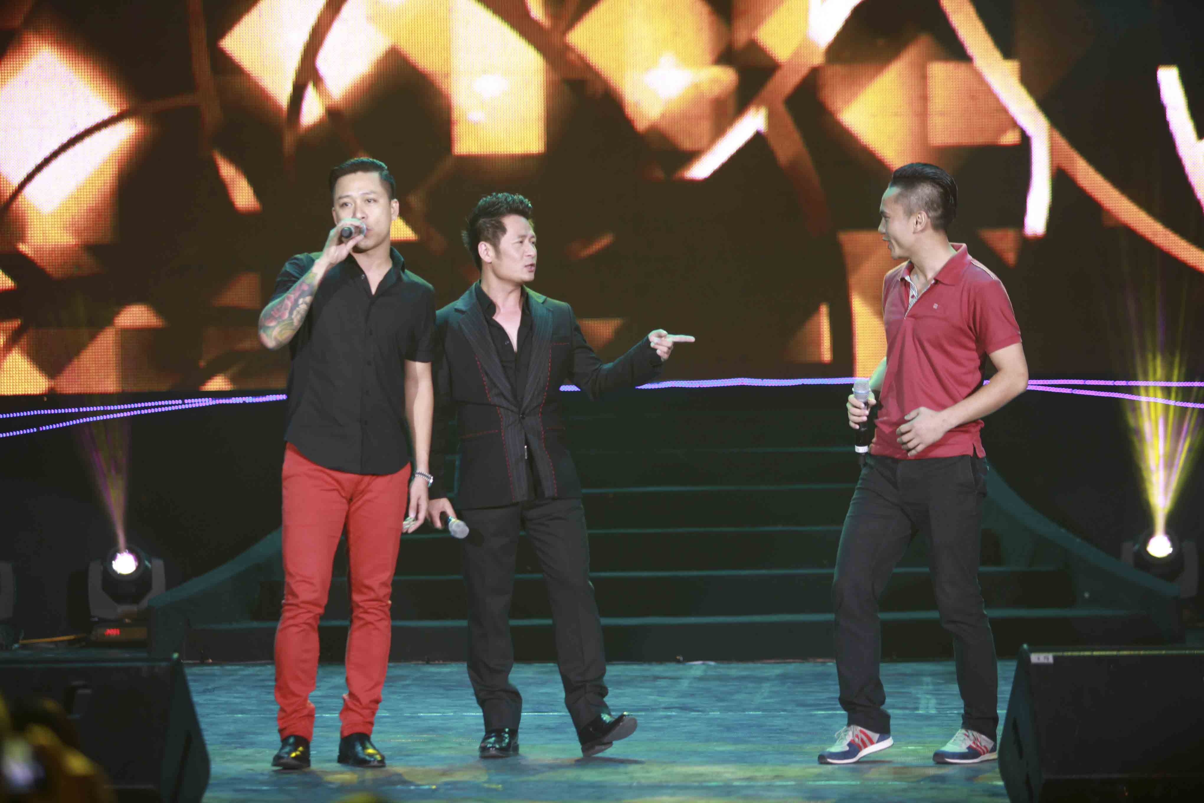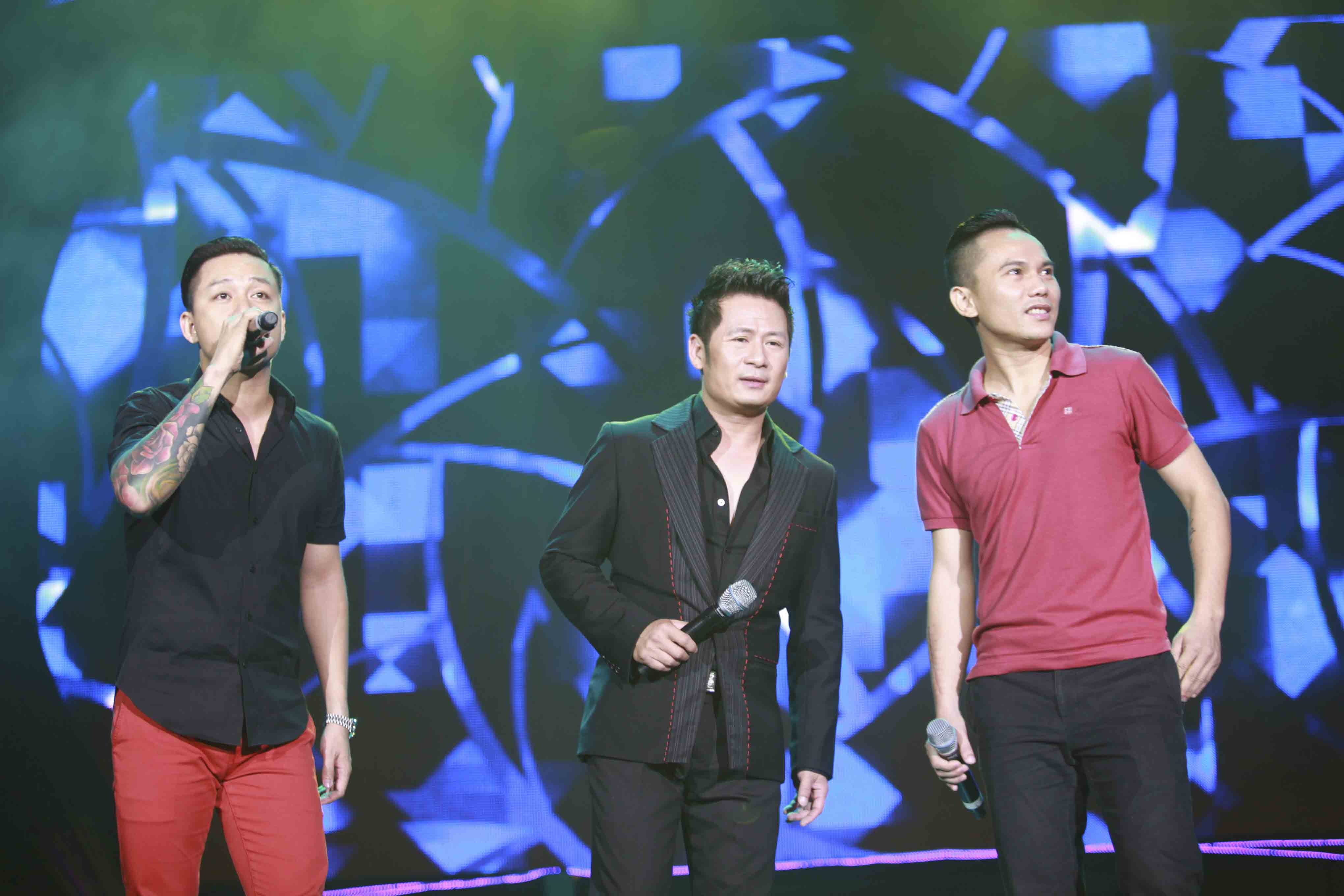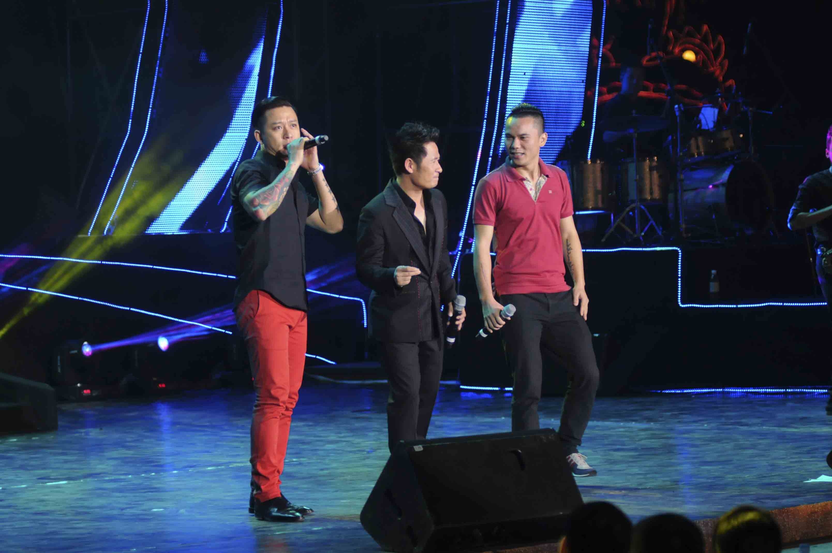 | Bộ ba cùng thể hiện những ca khúc như Đổi thay, Trái tim bên lề... một cách ngẫu hứng để tri ân khán giả vì những tiết mục này hoàn toàn không nằm trong kịch bản. |
