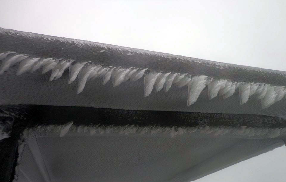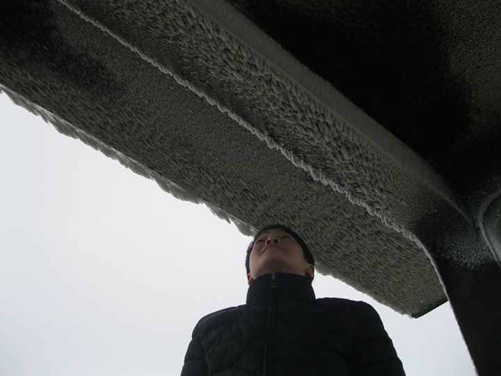 | "Nhũ băng" trên mái hiên trước nhà. |