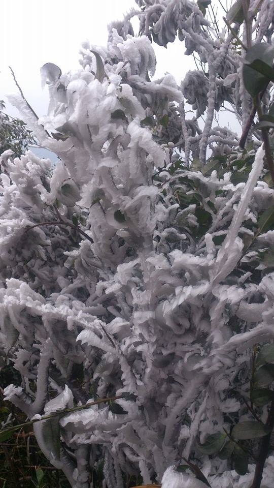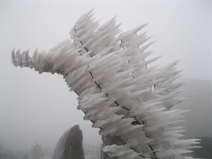 | Tại khu du lịch Mẫu Sơn, Lộc Bình (Lạng Sơn), vào ngày 19/2, nhiệt độ đã giảm xuống - 0,6 độ C, băng tuyết lại xuất hiện. |