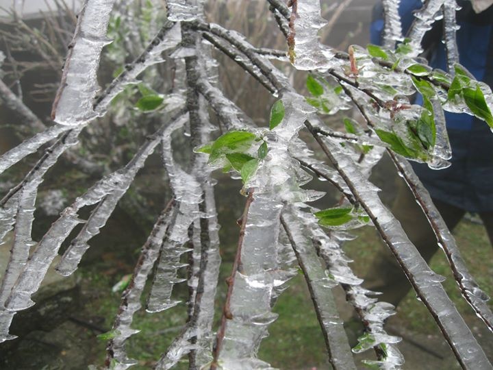 | Vẻ đẹp của cây lá mùa xuân trong những ngày băng tuyết. |