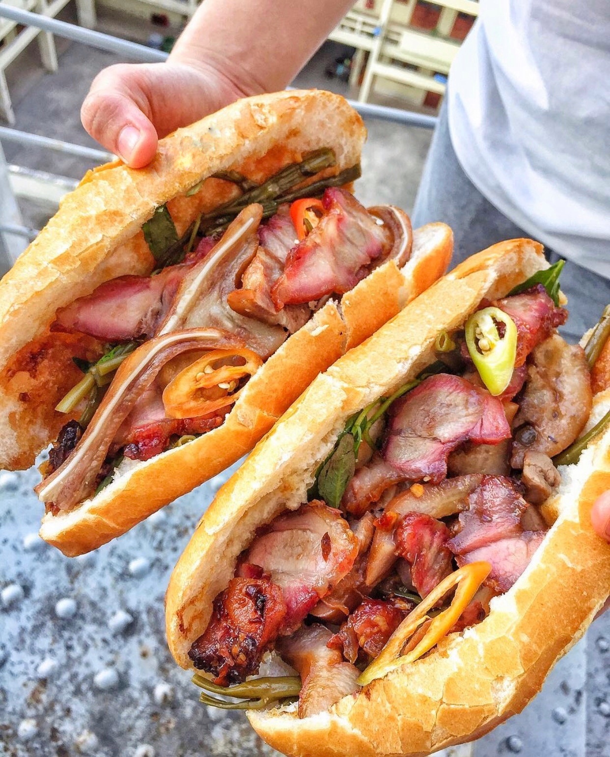| TP.HCM là nơi có các kiểu bánh mì đốn tim thực khách nhờ sự kết hợp mới lạ từ nguyên liệu đơn giản. Bánh mì nhân phá lấu tai heo, xíu mại, bánh tráng trộn hay bánh mì kẹp kem, chấm cacao luôn chinh phục mọi tín đồ ẩm thực. Những ổ bánh mì giòn rụm, topping đa dạng này sẽ làm bạn thỏa mãn vị giác sau nhiều ngày ở nhà tránh dịch. Ảnh: Now, Mitsfoody. |