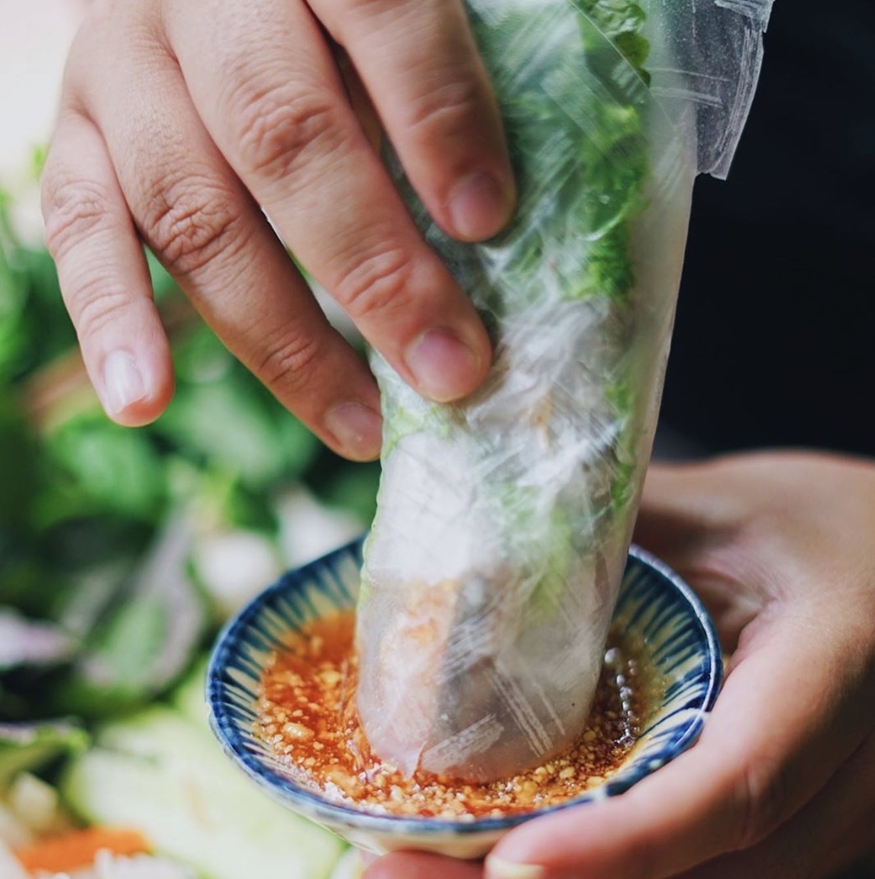 | Nem nướng góp mặt trong loạt hương vị làm tan chảy vị giác của bạn những ngày đầu nới lỏng giãn cách xã hội. Phần nem nướng vàng đều, thơm lừng kèm rau sống được cuốn trong bánh tráng tạo sức hút khó cưỡng. Bát nước mắm ớt tỏi sẽ làm tăng vị thơm ngon cho món ăn này. Ảnh: Foodholicvn. |