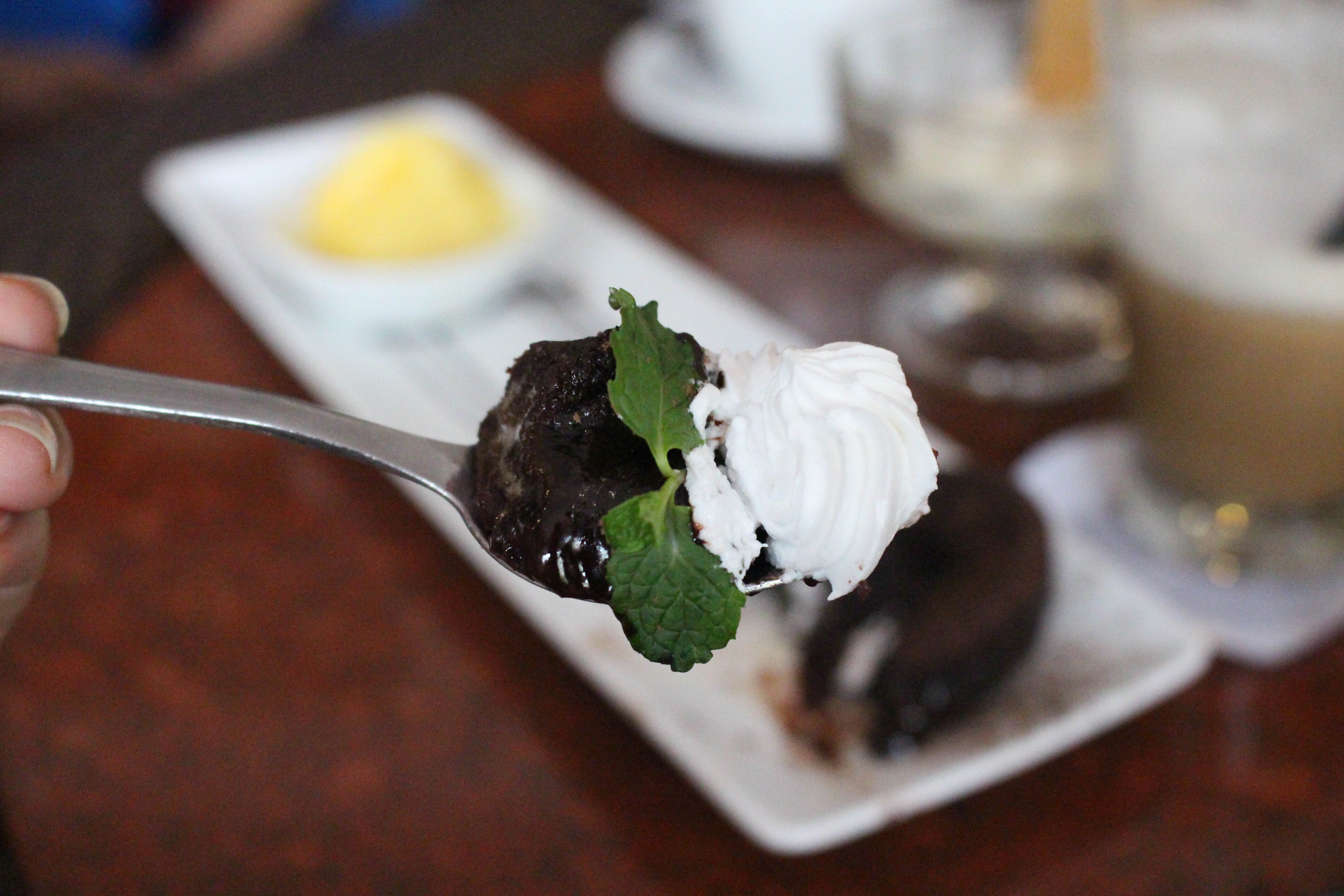 Nhân chocolate nguyên chất cùng vỏ bánh có sự tham gia của thành phần này nên bánh ngọt đậm. Khi phục vụ, các quán thường dọn kèm một viên kem có vị chua (như xoài, chanh dây...) để cân bằng. Bạn có thể thưởng thức đan xen một miếng bánh, một muỗng kem hay cùng lúc cả hai. Mỗi lựa chọn đều có những trải nghiệm riêng. |