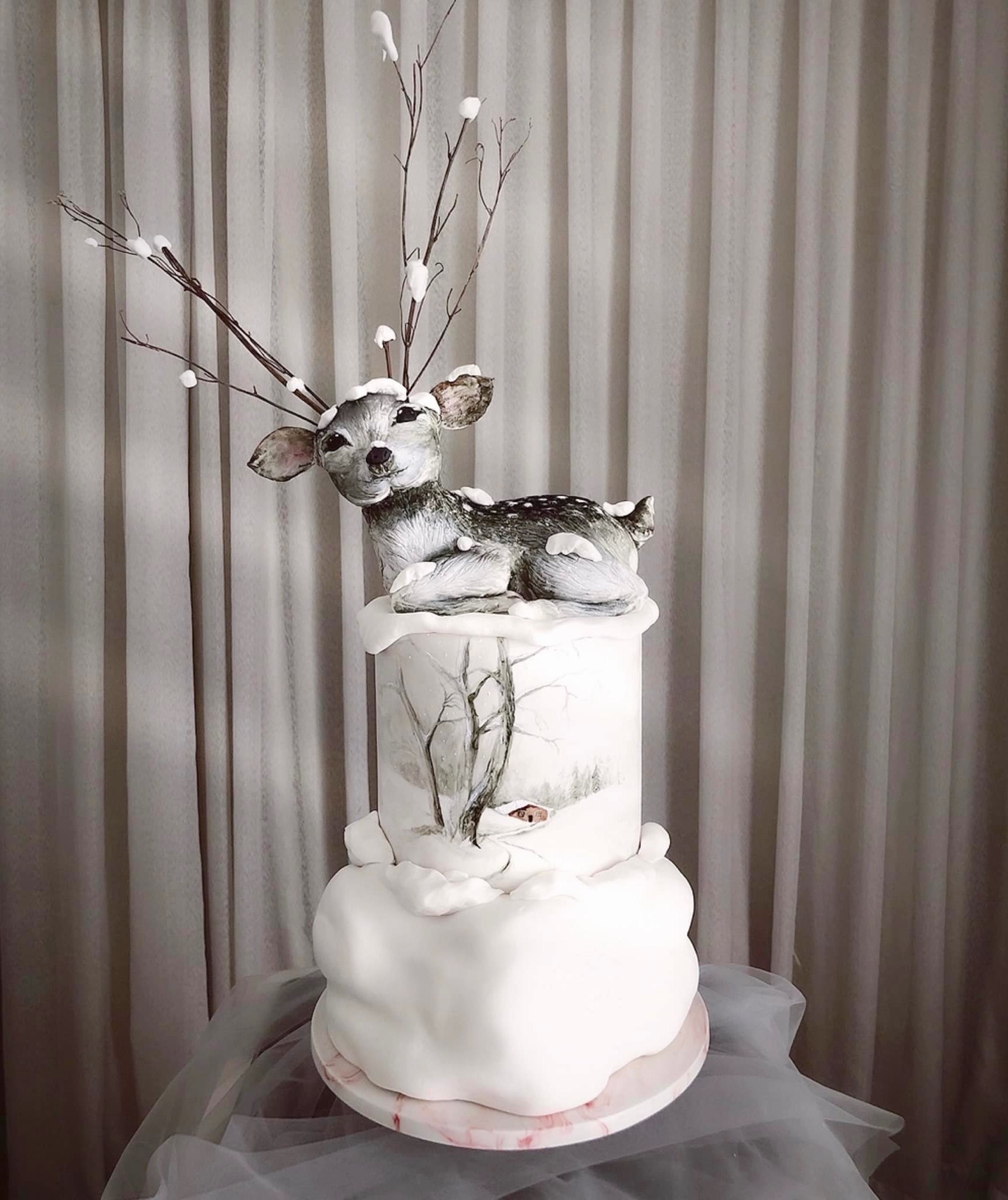 Trắng là màu của tuyết, biểu tượng mùa đông. Đây cũng là màu gắn với sự tinh khiết và an lành trong văn hóa phương Tây. Những chiếc bánh có hình chú gấu, đàn cừu được thực hiện với tone trắng, điểm xuyết bằng các họa tiết sắc đen, hồng, vàng làm tăng tính sang trọng, cao cấp.