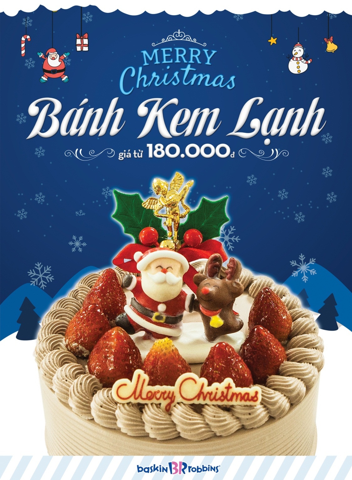 Baskin Robbins mang đến cho bạn những thiết kế bánh kem lạnh đặc biệt dành riêng cho mùa Noel: với lớp bên ngoài được phủ kem tươi xốp mịn bao bọc bên trong là 2 lớp kem lạnh ngon tuyệt.