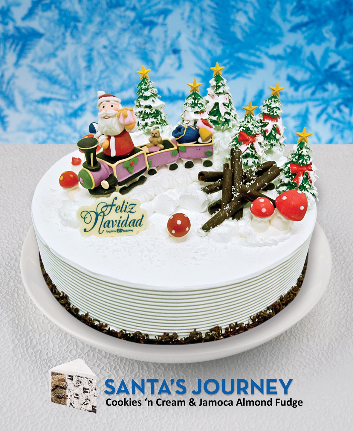 | Chiếc bánh Santa’s journey mang đến cho bạn sự kết hợp hài hòa giữa kem Cookies’n Cream và Jamoca Almond Fudge. Đó là cuộc hành trình của Ông Già Noel trên chiếc tàu mang những món quà và niềm vui đến cho các bé. Thật hạnh phúc khi được nhận quà của Ông Già Noel phải không các bạn? |