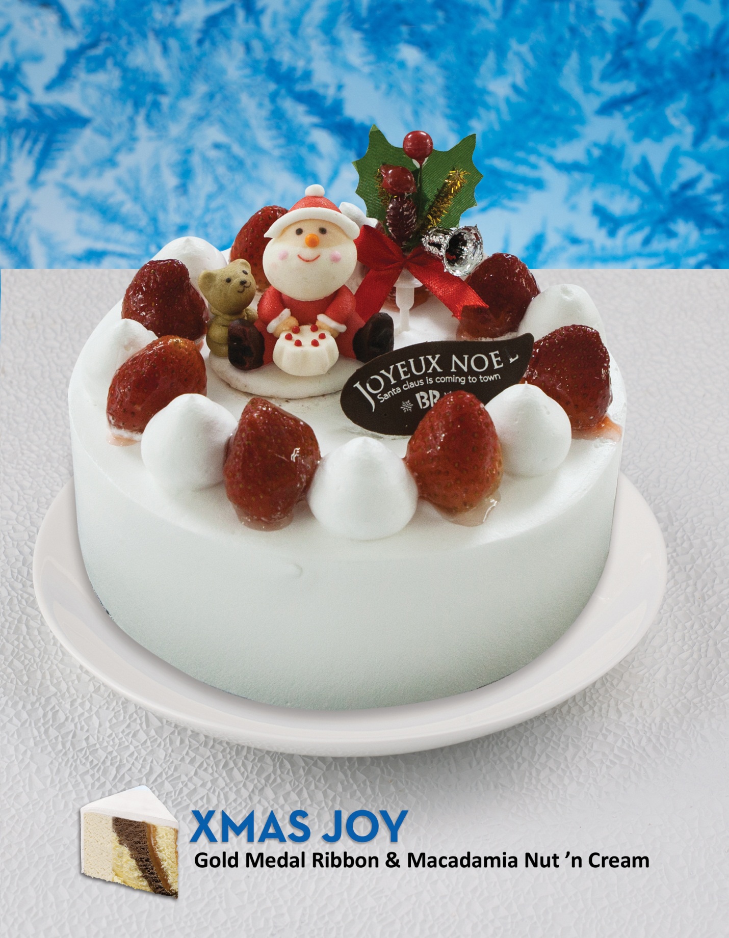| Xmas joy mang đến cảm giác thư thái của ông già noel bên cạnh người bạn thân sau chuyến hành trình dài mang quà tặng đến cho các bạn nhỏ. Bạn sẽ thích thú khi thưởng thức chiếc bánh với nhân kem mang vị béo tan mịn trên đầu lưỡi của hạt macadamia từ mùi kem macadamia nuts ‘s cream và những dải ruy băng caramel hòa quyện cùng mùi kem vani và sô cô la ngọt ngào của mùi kem Gold medal Ribbon. |
