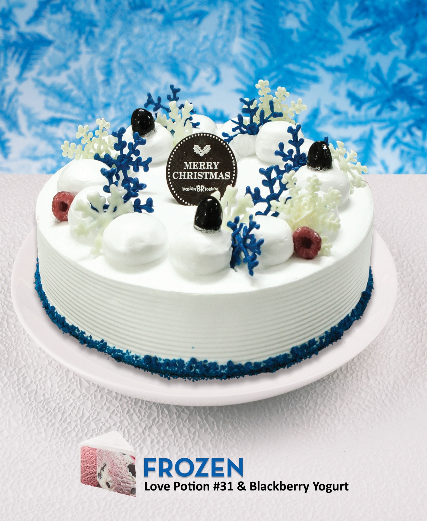 | Với chiếc bánh frozen bạn sẽ cảm nhận ngay không khí se lạnh của mùa Noel với khu rừng phủ đầy bông tuyết vô cùng đẹp mắt. Bên trong bánh là 2 mùi kem được yêu thích Love Potion #31: những mẫu sô cô la hình trái tim lẫn trong dải siro mâm xôi và kem vani hòa quyện cùng vị chua thanh của mùi kem sữa chua dâu tằm - blackberry yogurt ngon tuyệt. |