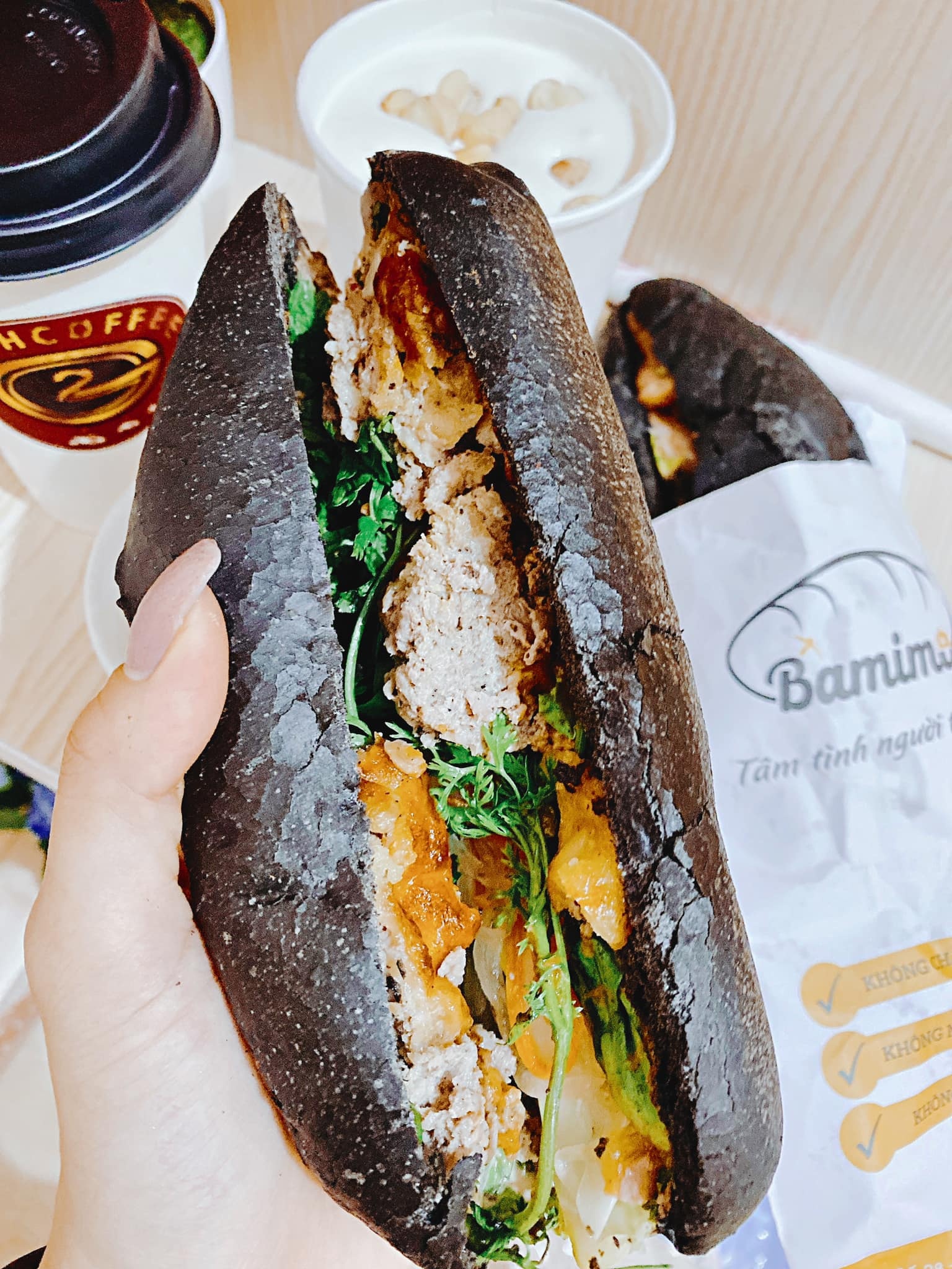 Món bánh có lớp vỏ và ruột đen giống y như cục than đang là tâm điểm hút những tín đồ ẩm thực những ngày gần đây. Loại bánh mì sở hữu vẻ ngoài độc đáo này được dân mạng gọi vui là "bánh mì bóng đêm" bán tại một cửa hàng ở Quảng Ninh. Ngoài bột mì là nguyên liệu chính, mật mực và than tre được đong đếm theo tỷ lệ để tạo ra màu đen hấp dẫn. Ảnh: Trần Khắc Tuấn. |