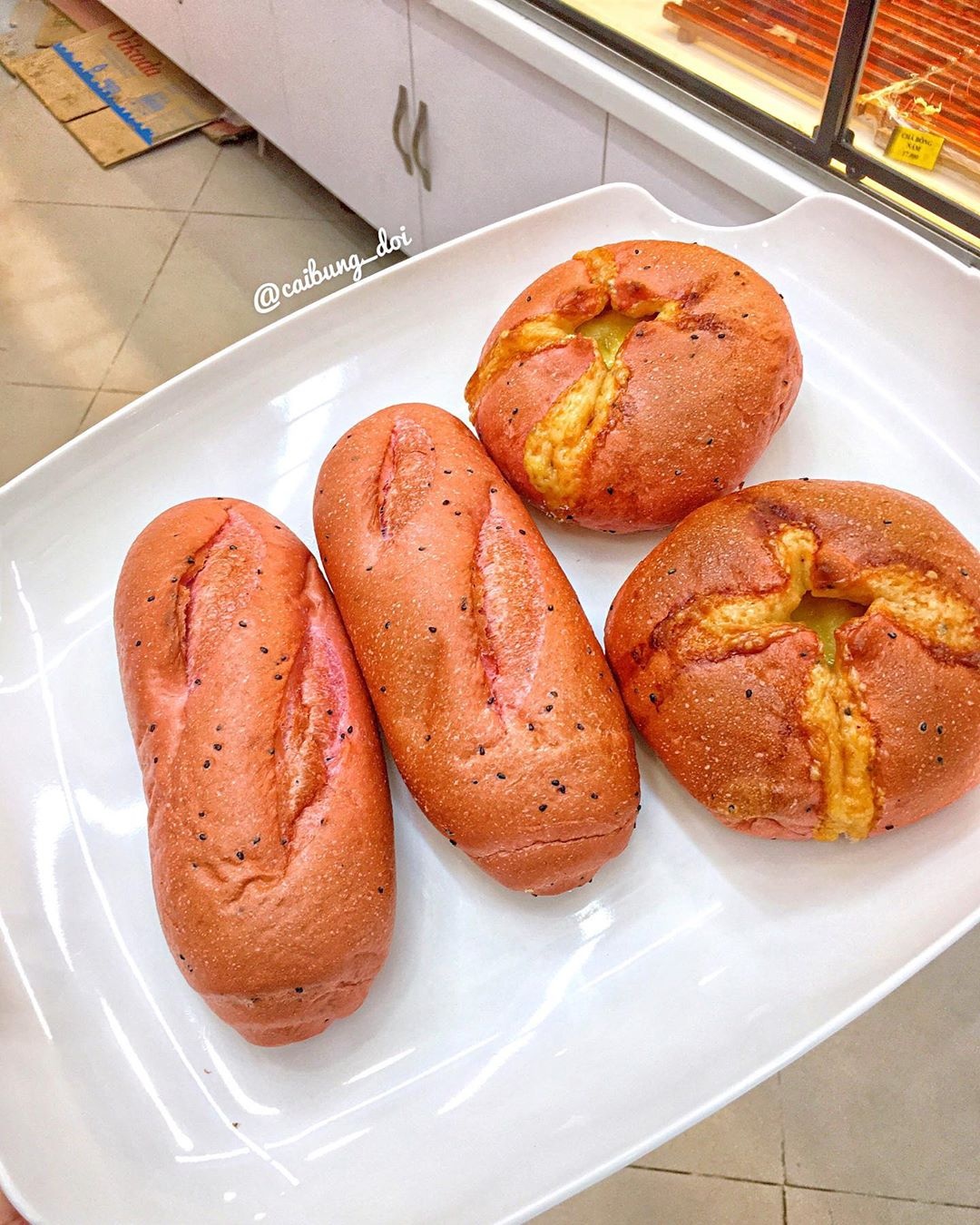 Ngoài bánh mì không nhân, nhiều thực khách đánh giá cao sự kết hợp vỏ bánh thanh long cùng các loại nhân như phô mai, khoai môn, sầu riêng. Phần nhân khoai môn béo thơm còn phô mai thì nóng, mềm, kéo sợi hấp dẫn. Ảnh: Eatwithcheesie, caibung_doi. |