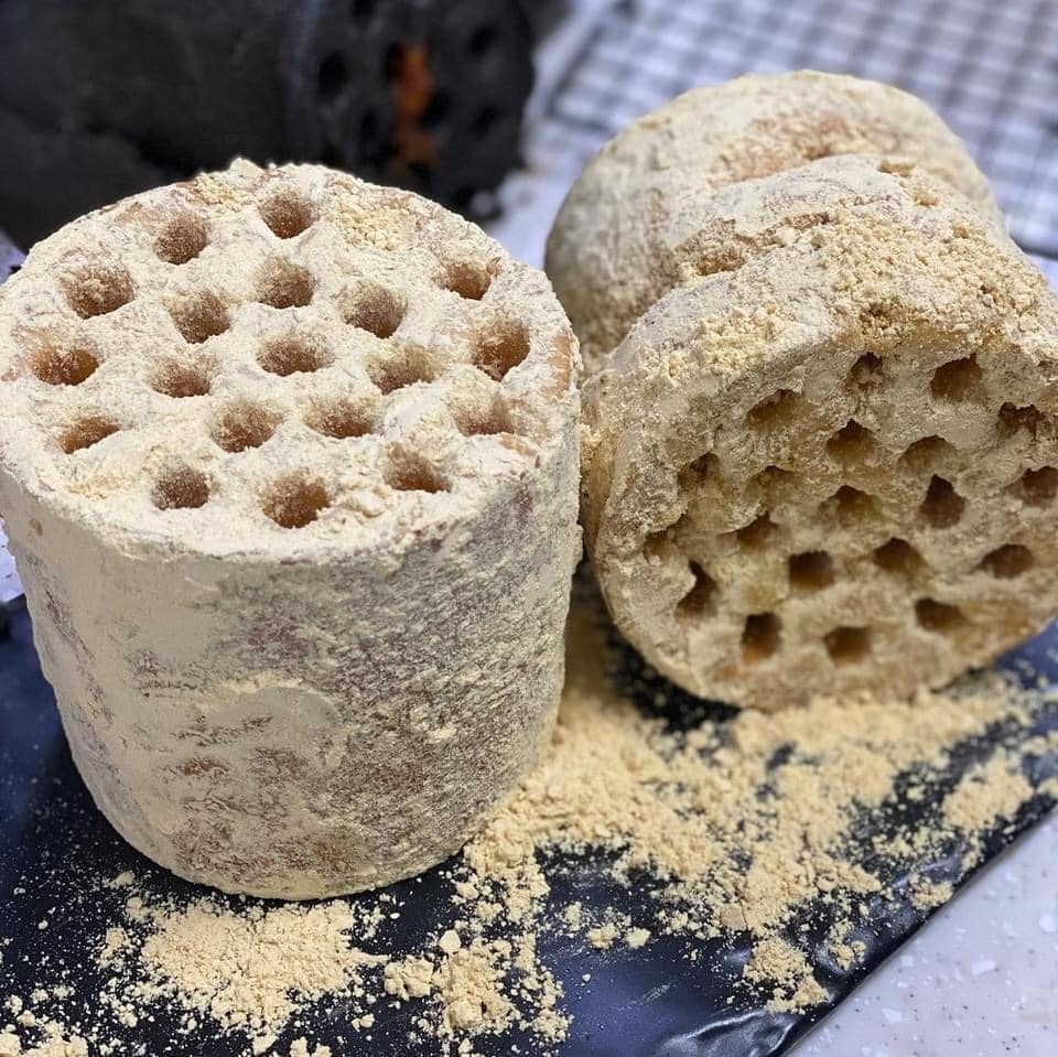 Hình ảnh chiếc bánh mì hình than tổ ong có kích thước 10x10 cm được nhiều bạn trẻ chia sẻ trên mạng.