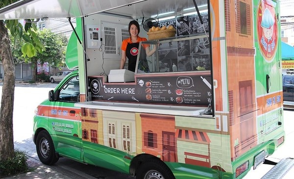 Xe bán bánh mì Việt lưu động tại Bangkok.