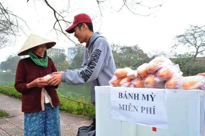 Bạn Phan Nhân, một thành viên trong nhóm, cho biết mô hình này được thực hiện theo mô hình bánh mỳ từ thiện ở TP HCM.